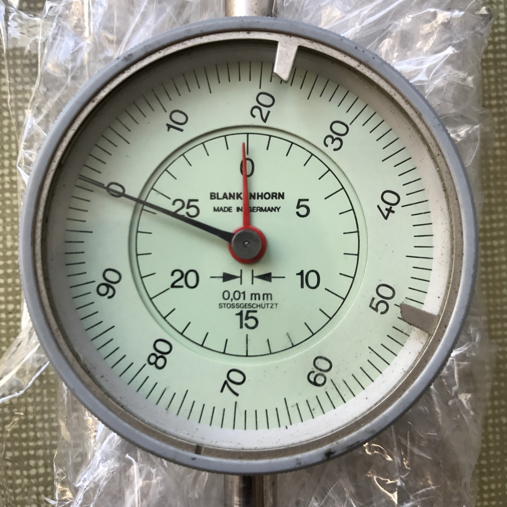 ...und hier ist auch gleich der Messuhr-Kandidat. Messbereich bis 30mm, das reicht bis in so weiche Spine-Bereiche, dass es ok sein sollte.