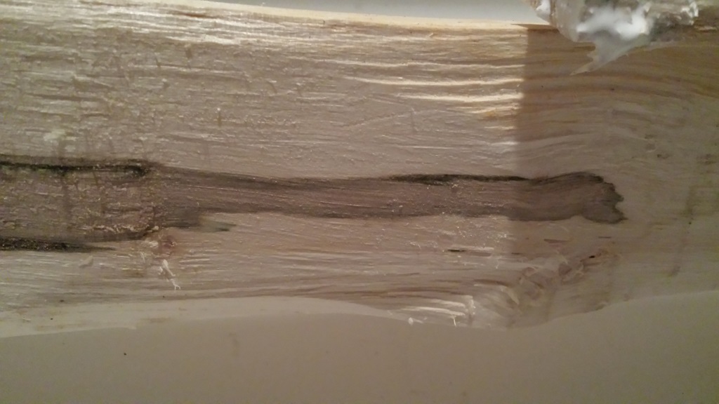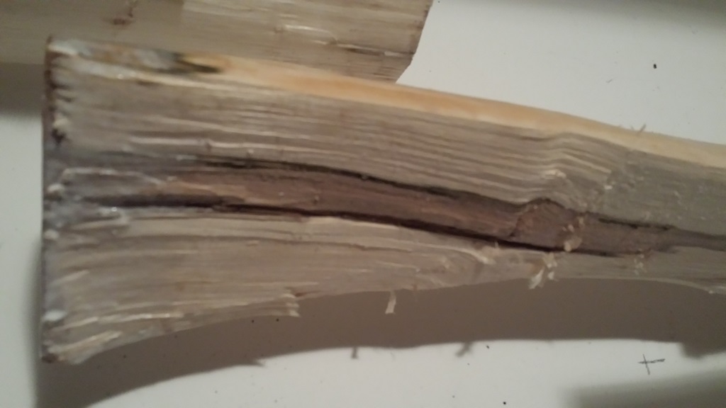 nach dem spalten hat sich das holz an einigen stellen grün verfärbt.