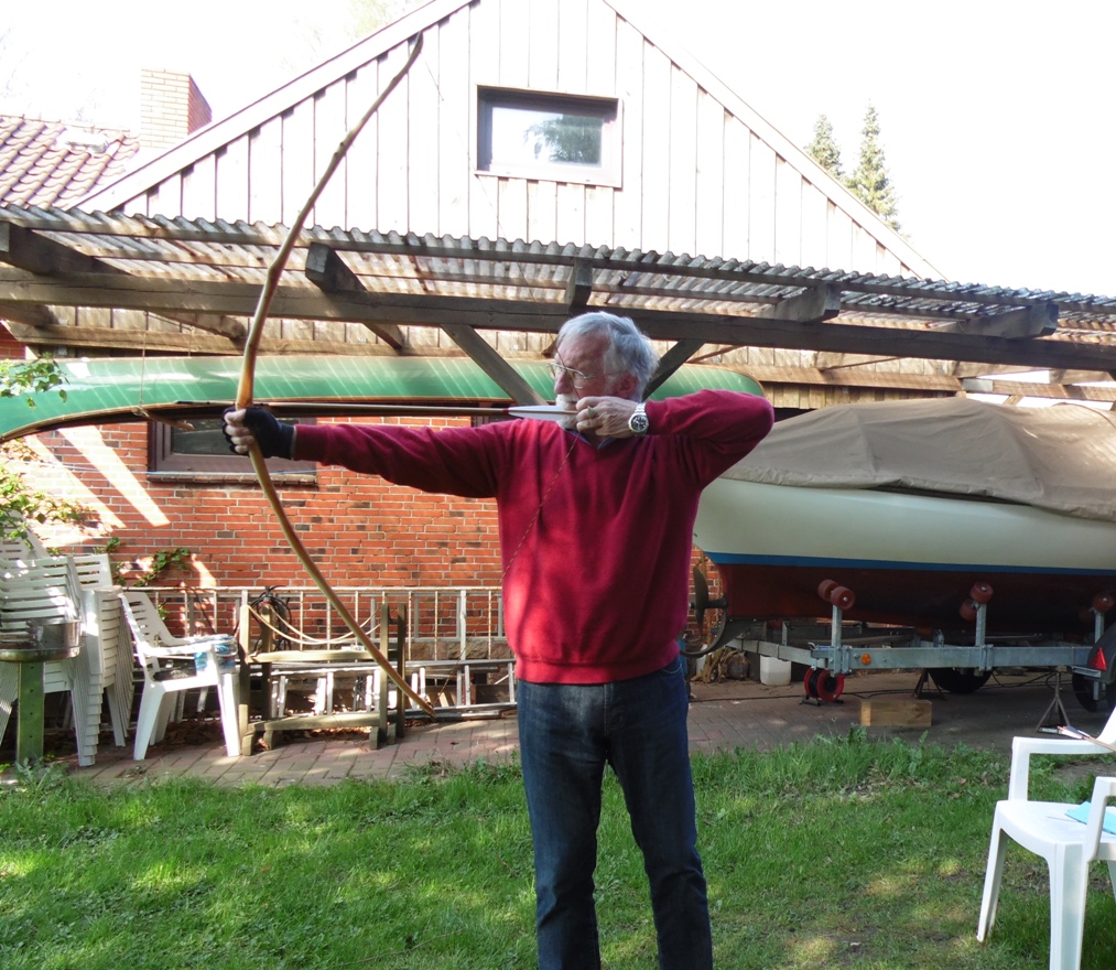 der "Mogelägypter" ist jetzt mein favorit in der Sammlung von 8 selbstgebastelten Bögen. Richtig flott und ausgeglichen. Bei 28" beträgt das Auszugsgewicht 45#. Und Opa macht mit, ohne zusammen zu brechen...