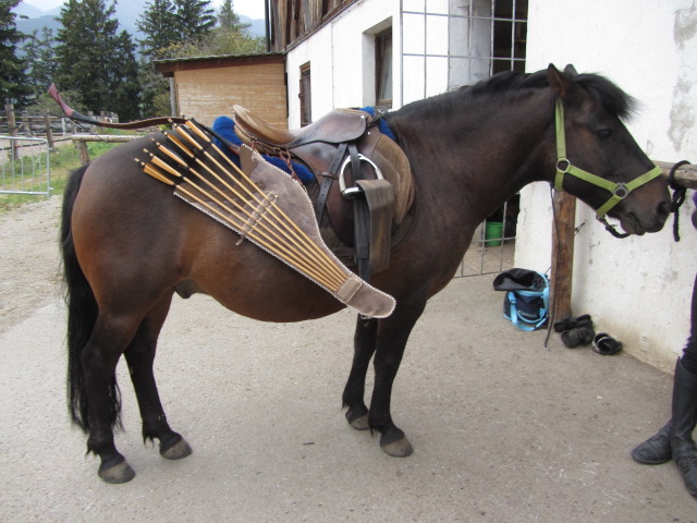 Hallo Leute, Für meinen Reiterbogen wollte ich etwas Standesgemäßes zusammenschräubeln. Hier im Forum und in den Weiten des WWW bin ich auf einen Köcher (Tasche?) für den Bogen gestoßen. So einer sollte es werden und damit ich nicht zwei wuchtige Teile mit mir rumschleppen muss, sollten ein paar Pfei ...
