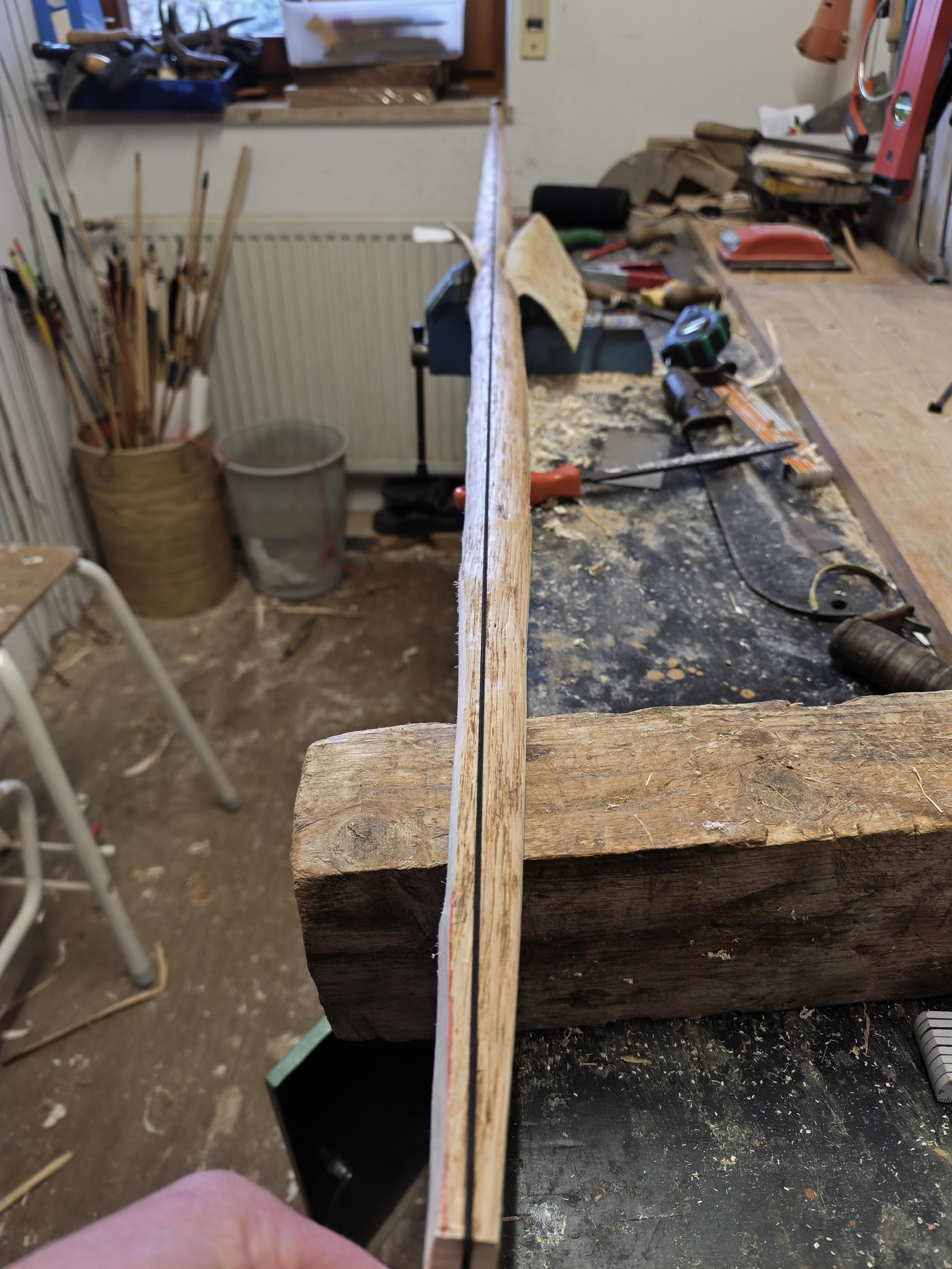 Hasel: Gewicht liegt jetzt bei 854g bei 190cm. Hab mich heute an das erste Inlay grob gesägt, ewig zurecht geraspelt anschließend reingeklebt. dabei eine seite mit Klebeband "abgeschalt" bin gespannt wies ausgepackt und zurechtgefeilt aussieht. IMG_20260114_172655_copy_3060x4080.jpg IMG_20260114_1 ...