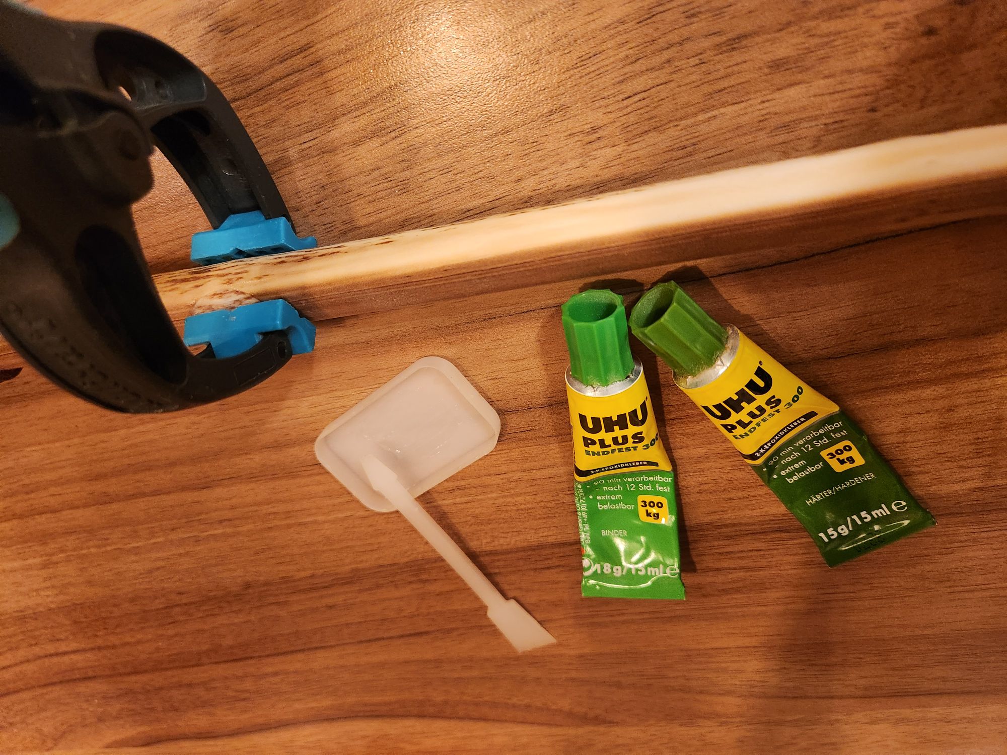 Die Enden hab ich mit einem "Schweiß-Gel" geklebt. Das ist so der krasseste Sekundenkleber den ich kenn. Und flächig hab ich Bastelkleber drunter.