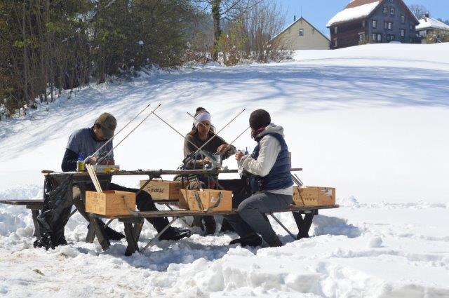 Bogenbau im April Schnee
