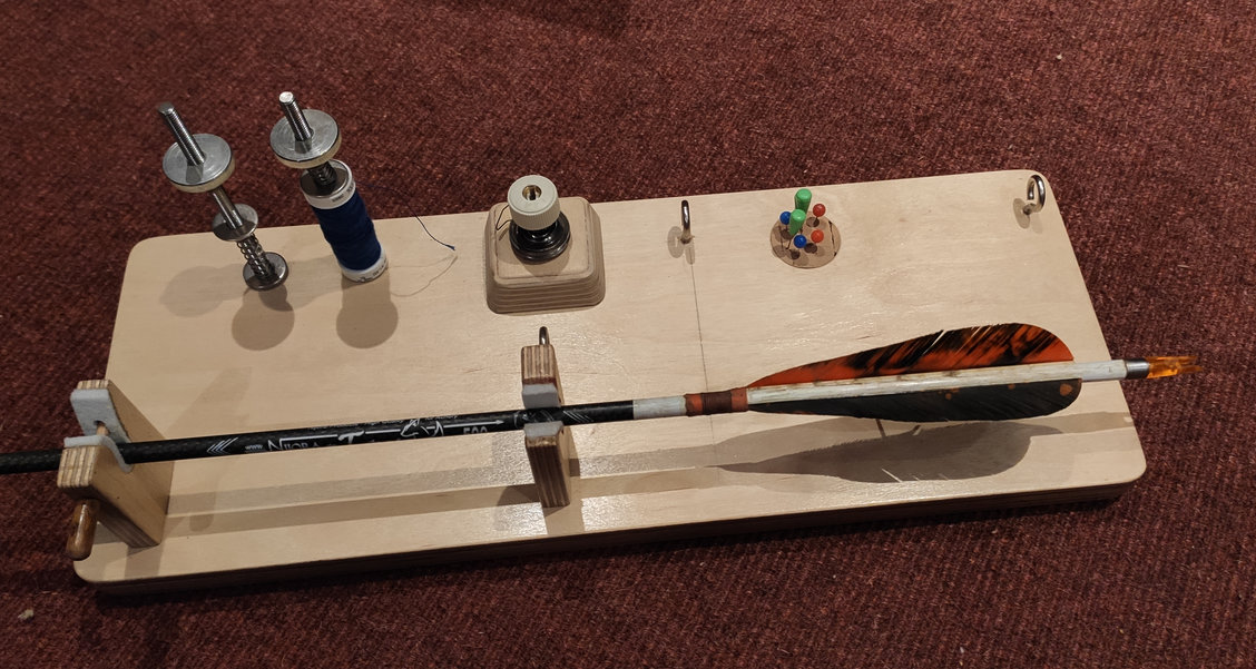 Hierzu gibt (gab?) es ein 'kommerzielles' Gerät, den "Arrow Wrapper", von Piotr Gonet zu dem es mehrere Youtube-Videos gibt, z.B. dieses: Arrow Wrapper Tutorial https://www.youtube.com/watch?v=b_jYUO3DajU&t=44s.