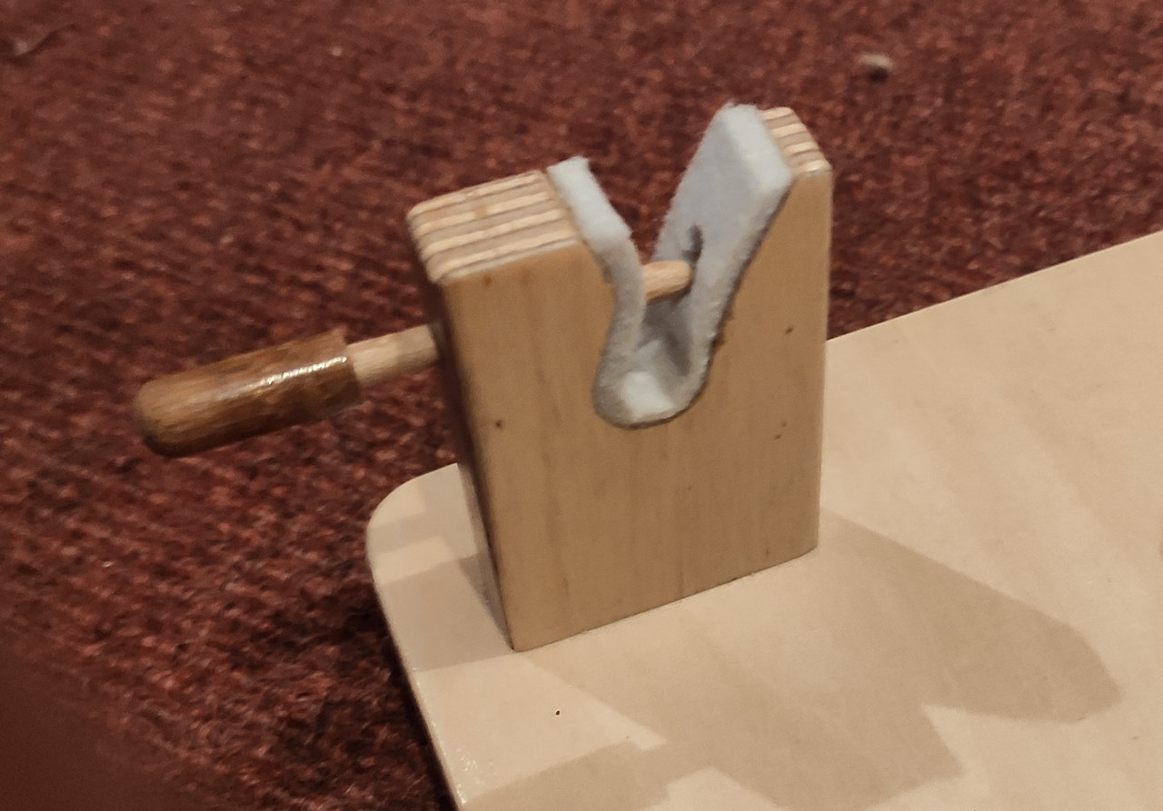 Beim Wickeln habe ich dann gemerkt, dass bei hoher Fadenspannung der Pfeil nach oben aus der Halterung herausrutscht, also habe ich einen Haltestift ergänzt.