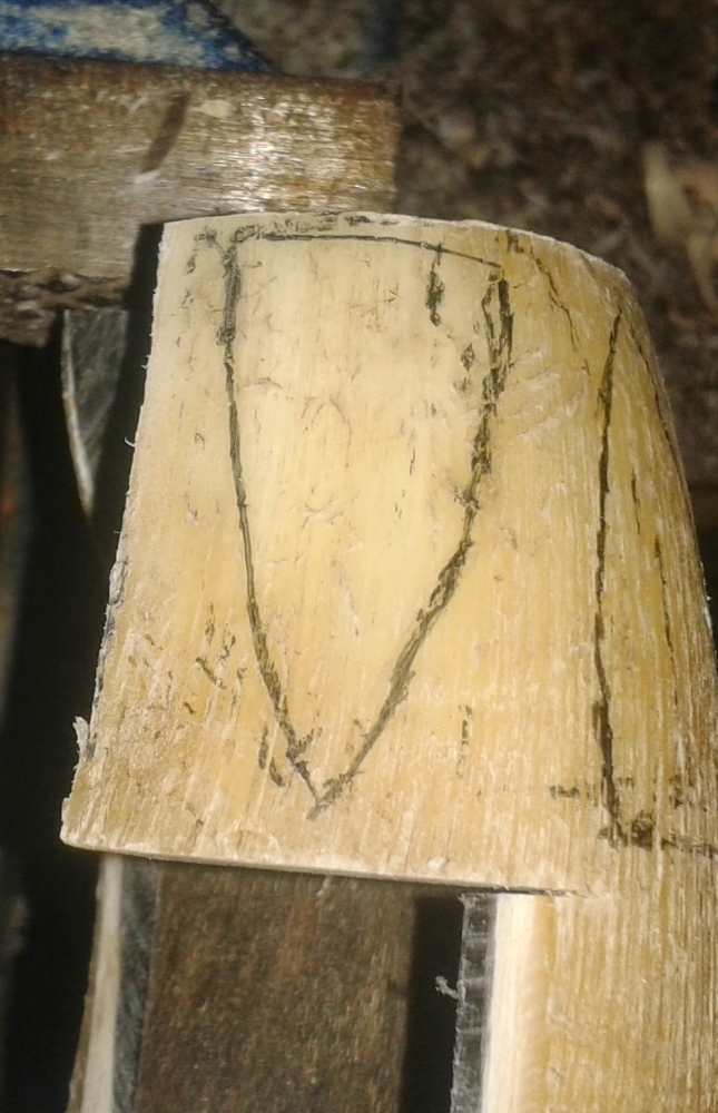 Also, erstmal grobe Form auf das Stück Horn aufzeichnen: