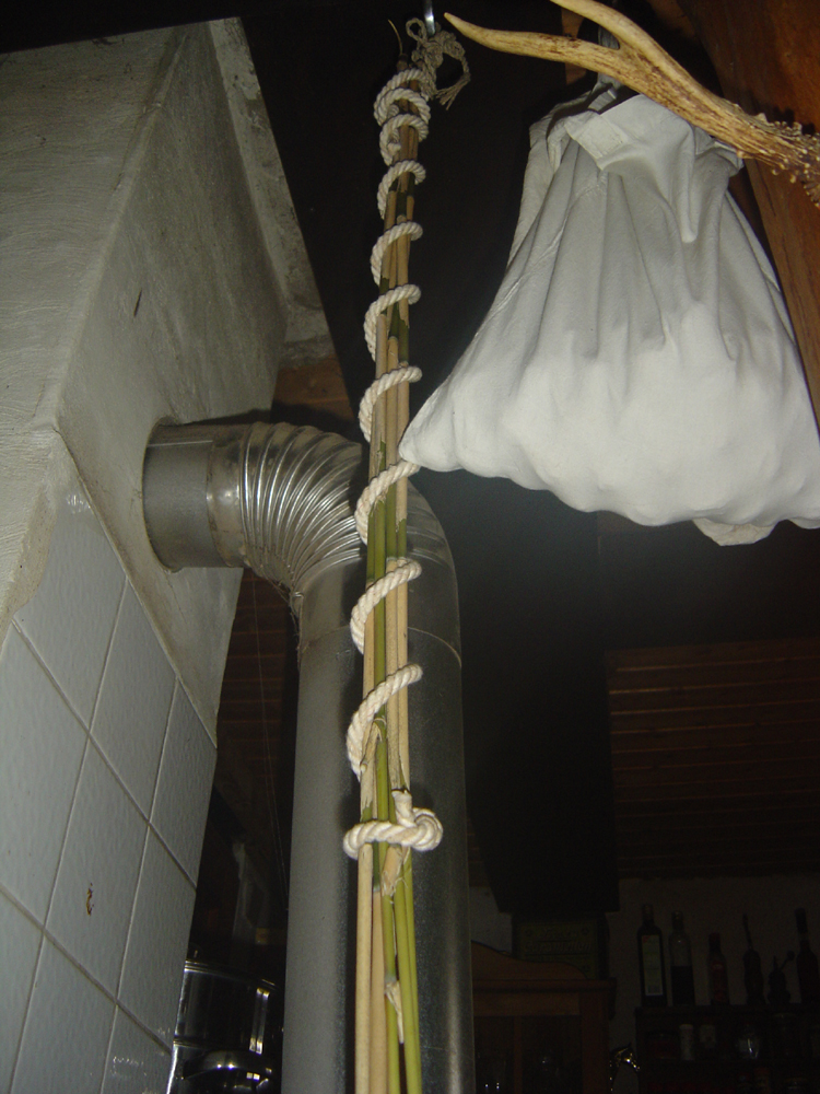Ich hab erst versucht, die Schösslinge kalt über eine Tischkante grob zu begradigen, das hat für mich aber nicht so gut funktioniert. Besser war relativ freihändig mit Oberschenkel als Ablage.