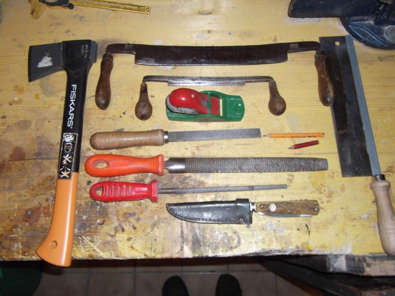 Hier das obligate Bild hier noch die Werkzeuge mit denen ich arbeite....bisher aber nur Beil und Ziehmesser