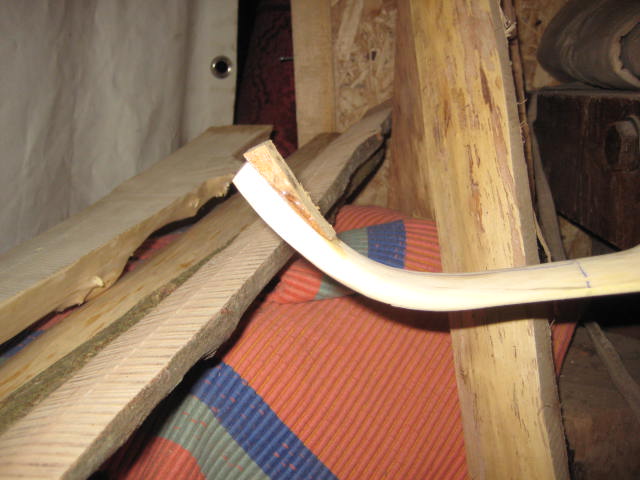 Der Breitenverlauf des Bogens wird angezeichnet. Die Tips bleiben aber mit 2cm noch breiter als angedacht. Im unteren Teil des Fotos der Griffbereich.