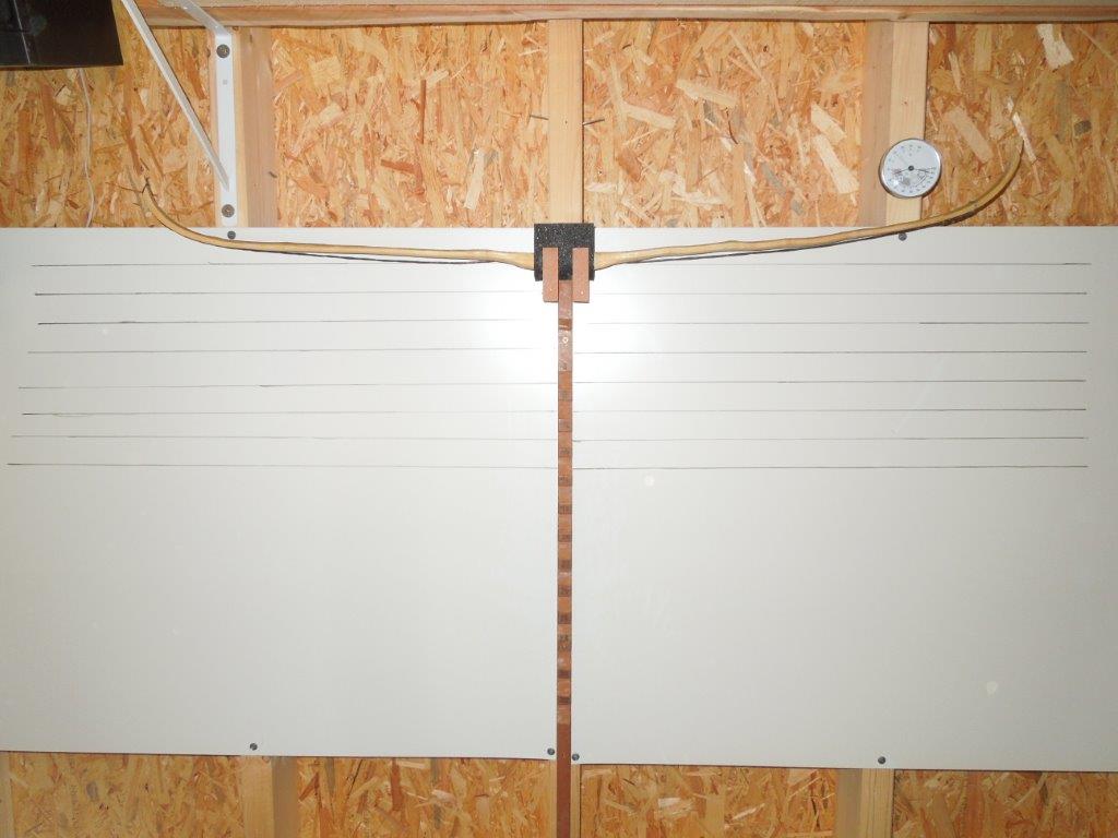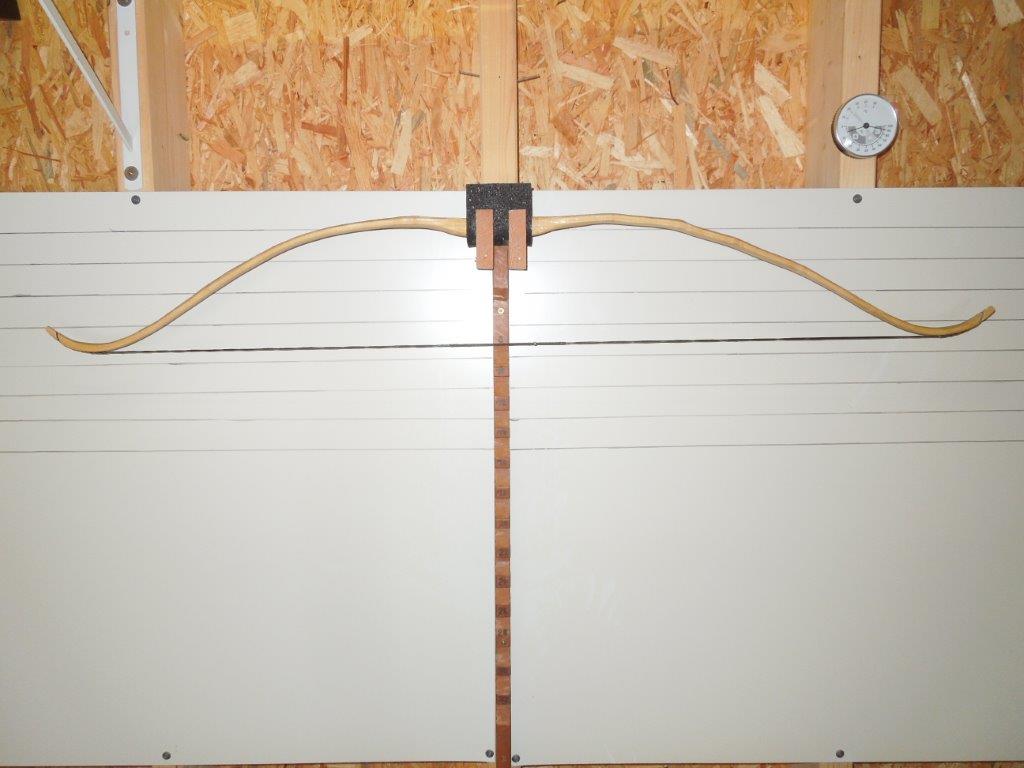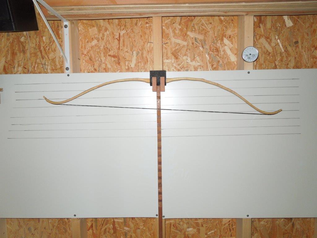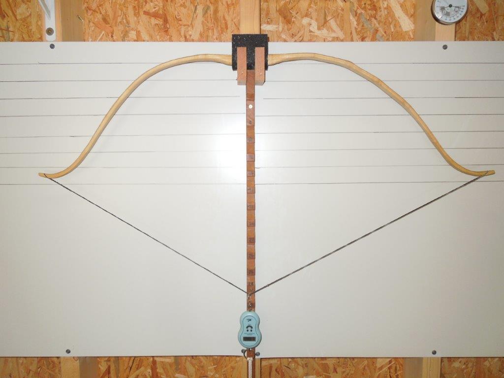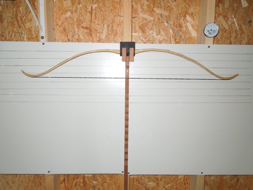 Der Bogen hatte ohne Sehne 25# bei 28" Auszug und bringt jetzt mit dem 2-3mm starken Sehnenbelag gerade mal 30# bei 28" Zoll auf die Waage