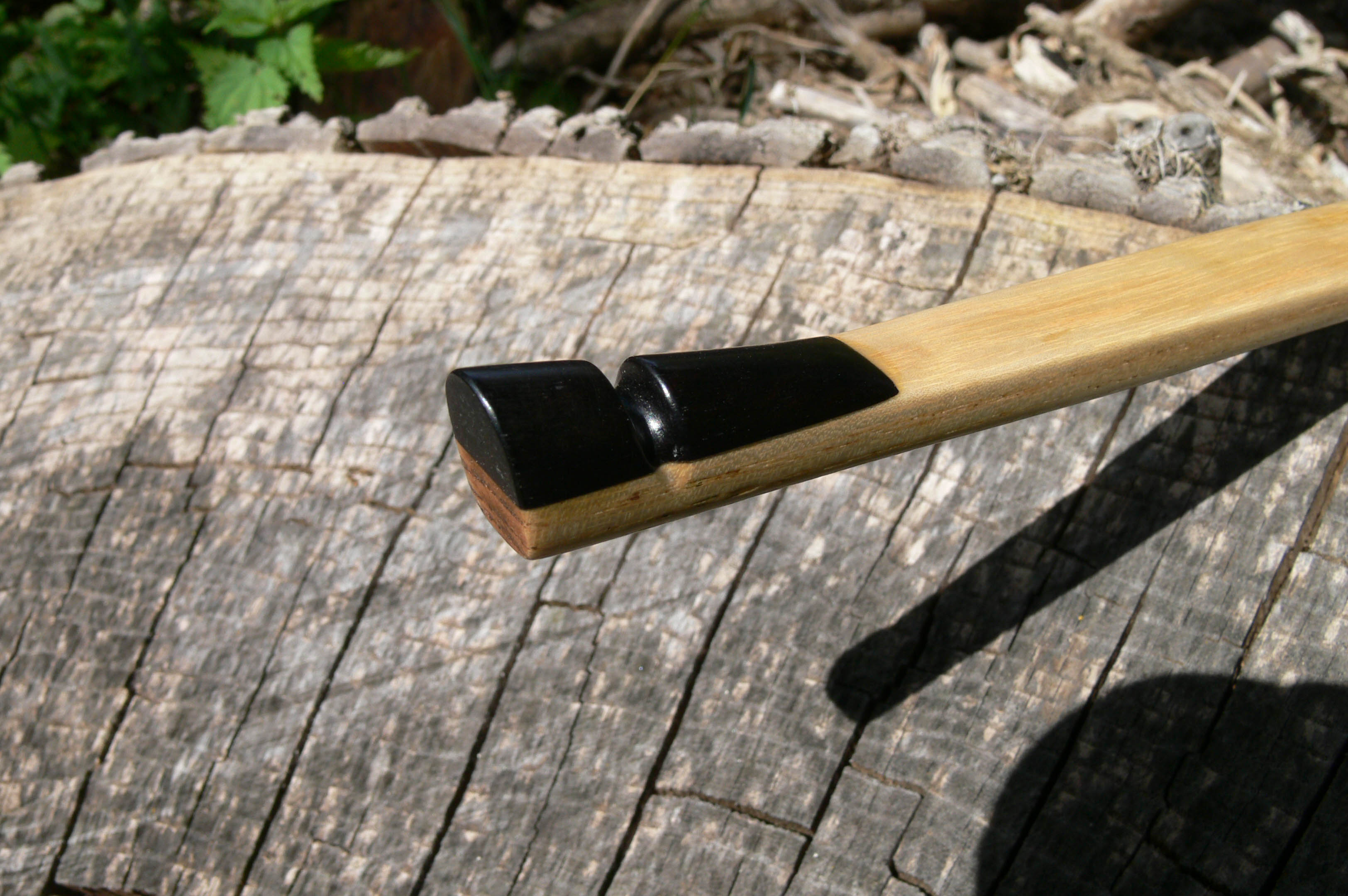 Du könntest auch ca. 3-5mm am Bauch runterschleiffen und Eiche oder Birne oder sonst was das Druck aushält draufbappschen. Dann haste mehr Zuggewicht und die Tipps passen eher, optisch find ich sie Klasse.