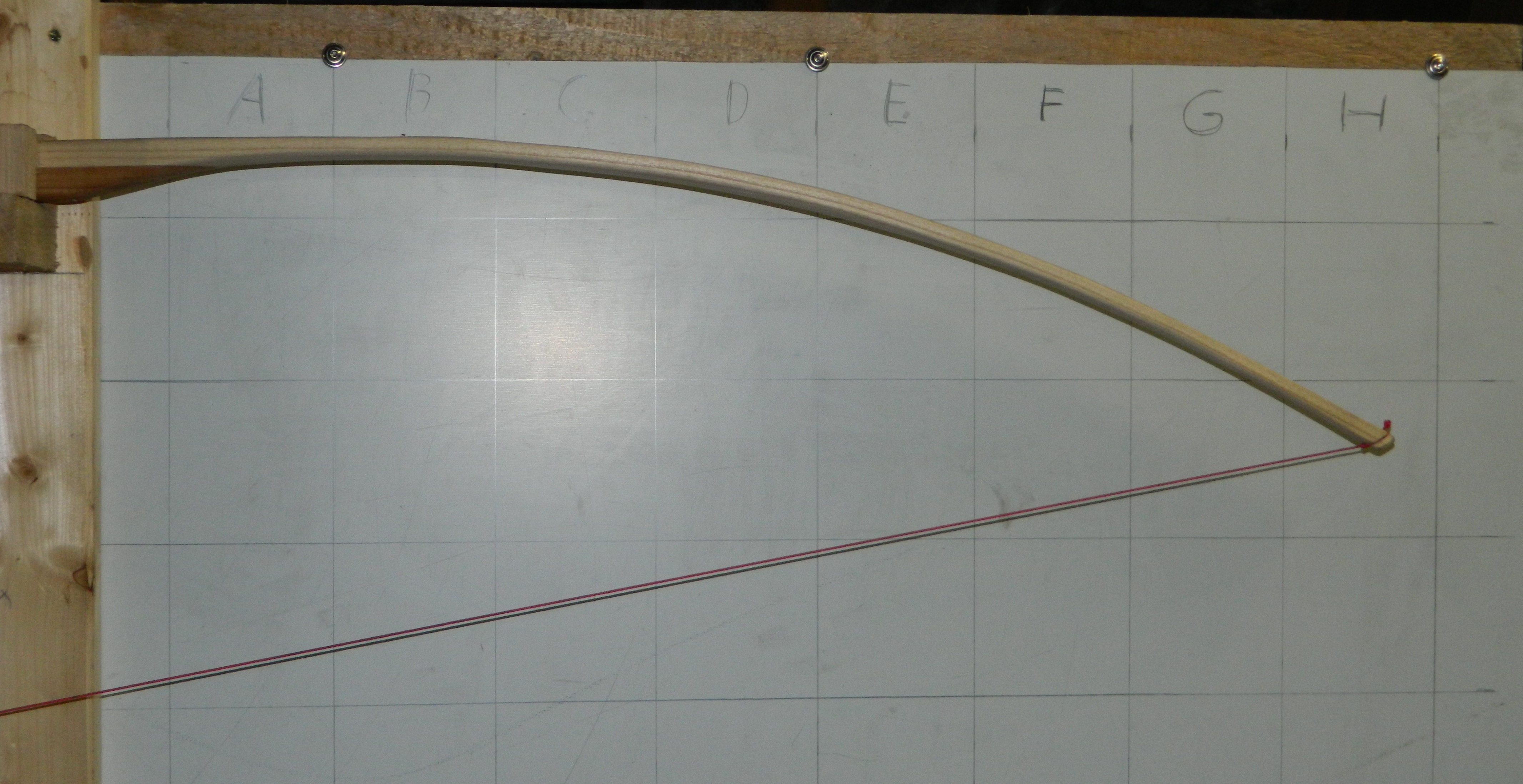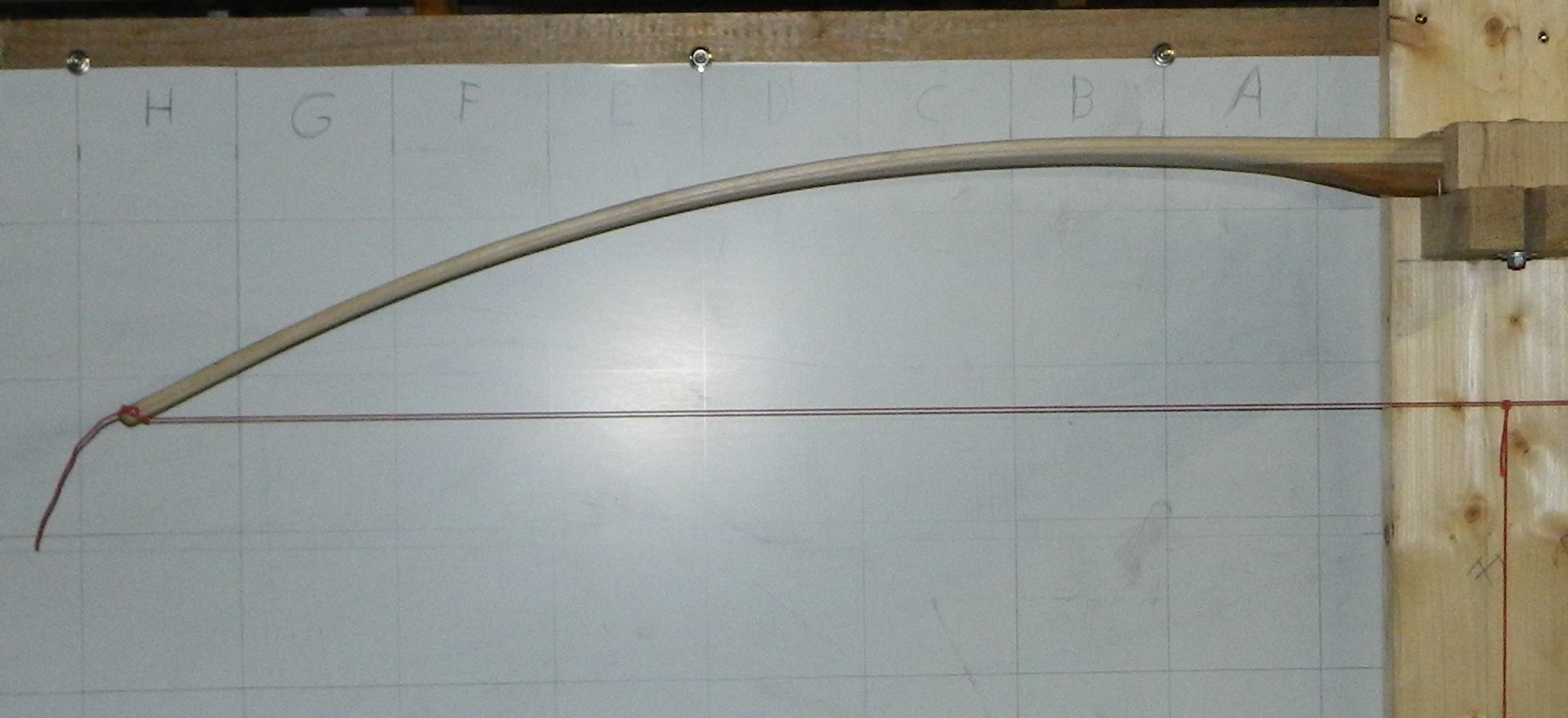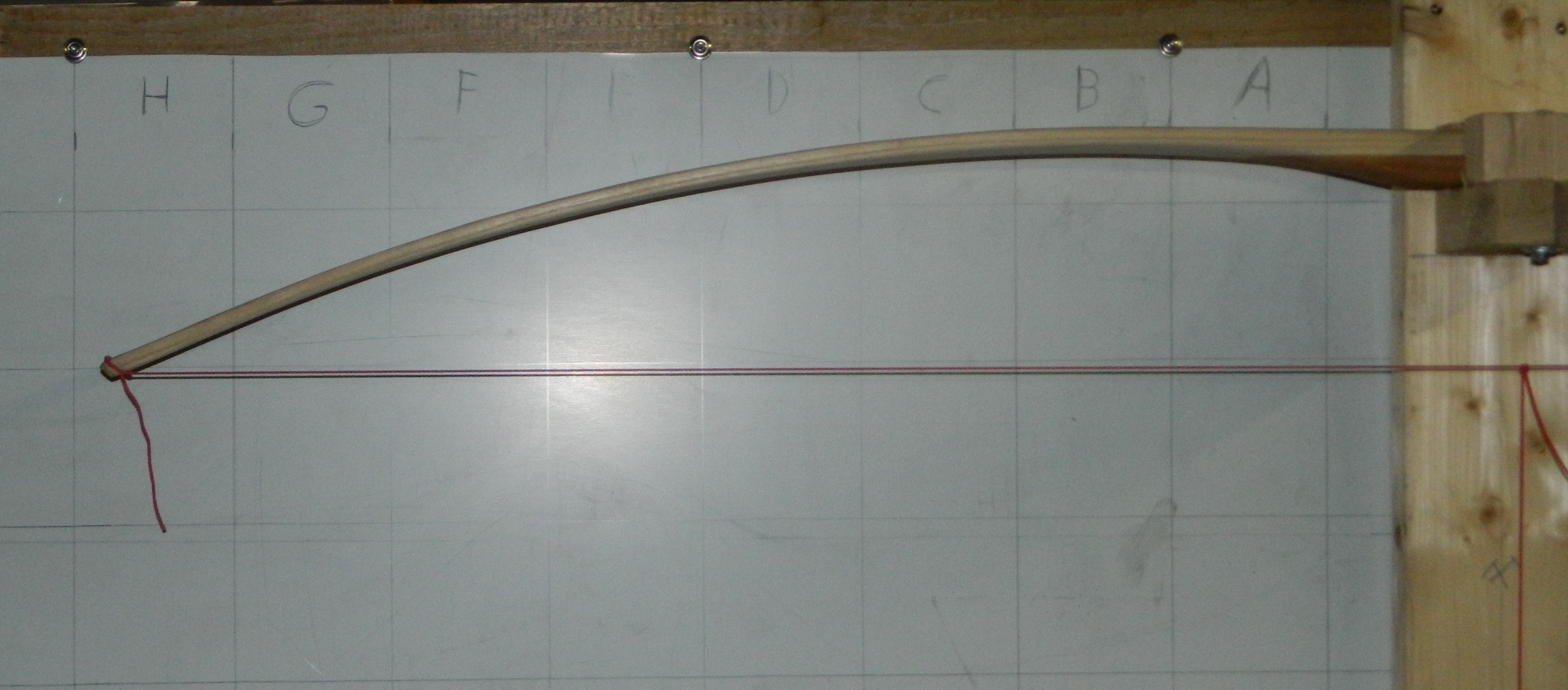 Der Tiller sieht momentan gut aus, ev. in den letzten Dritteln der Wurfarme Richtung WA-Ende (tips) ein ganz wenig mehr Biegung rein, aber nur wenig schaben und dann Foto....