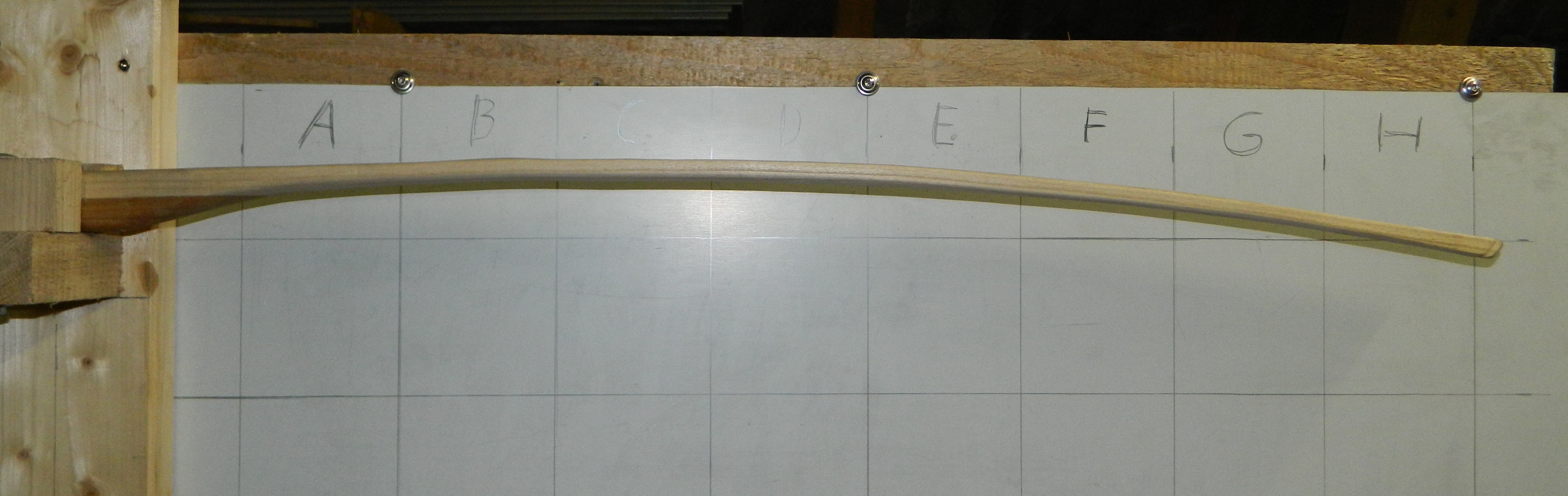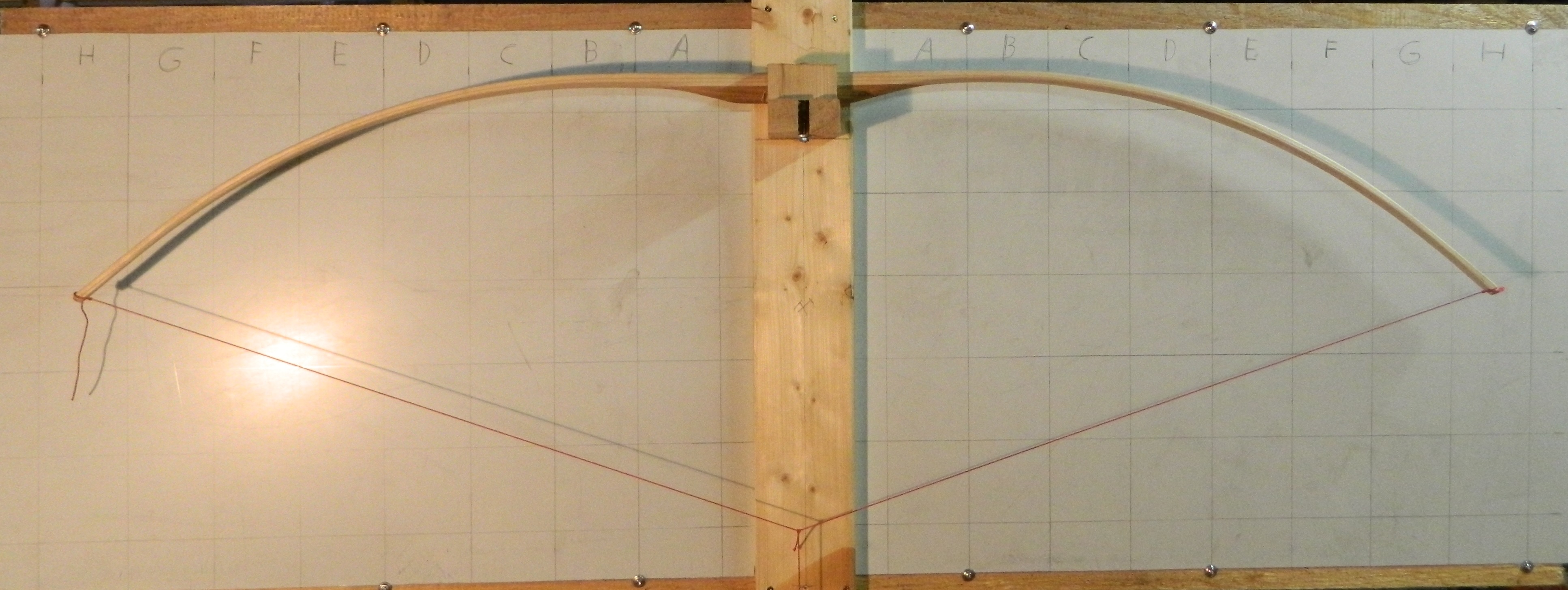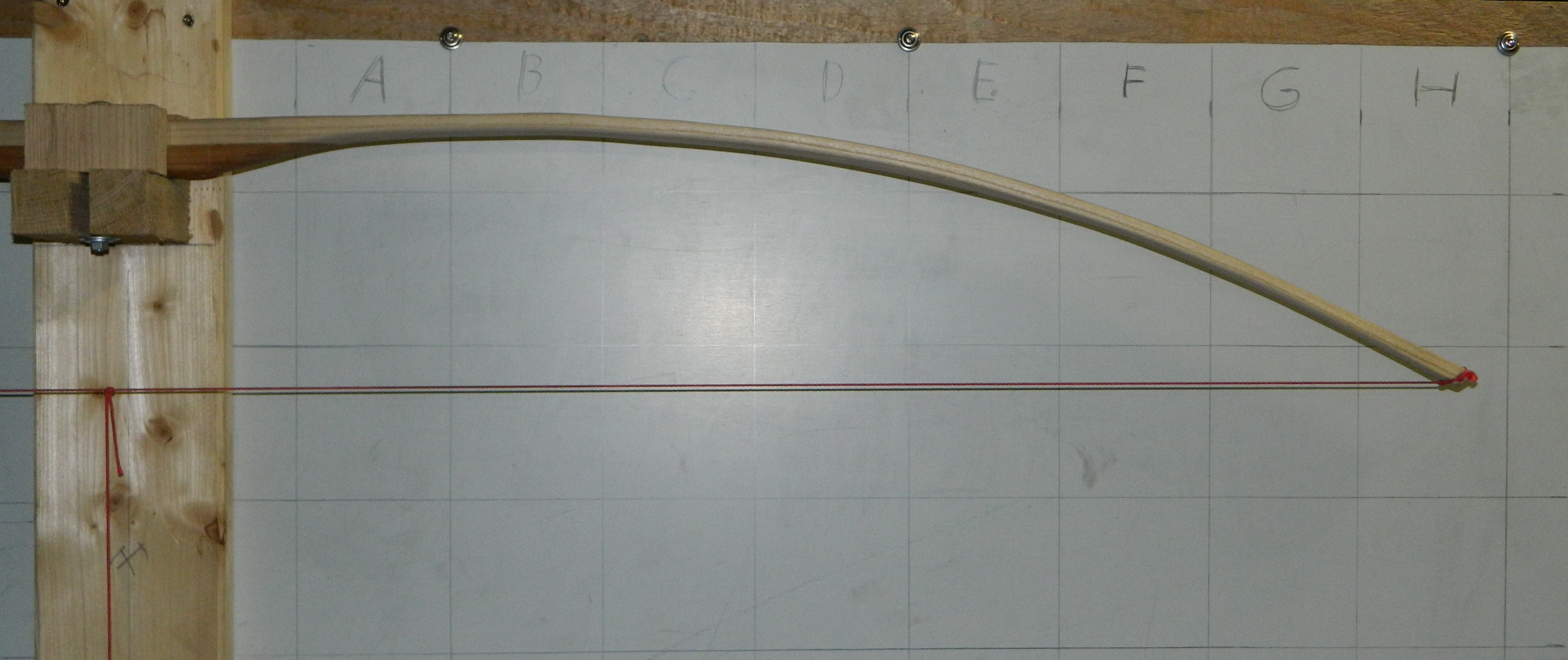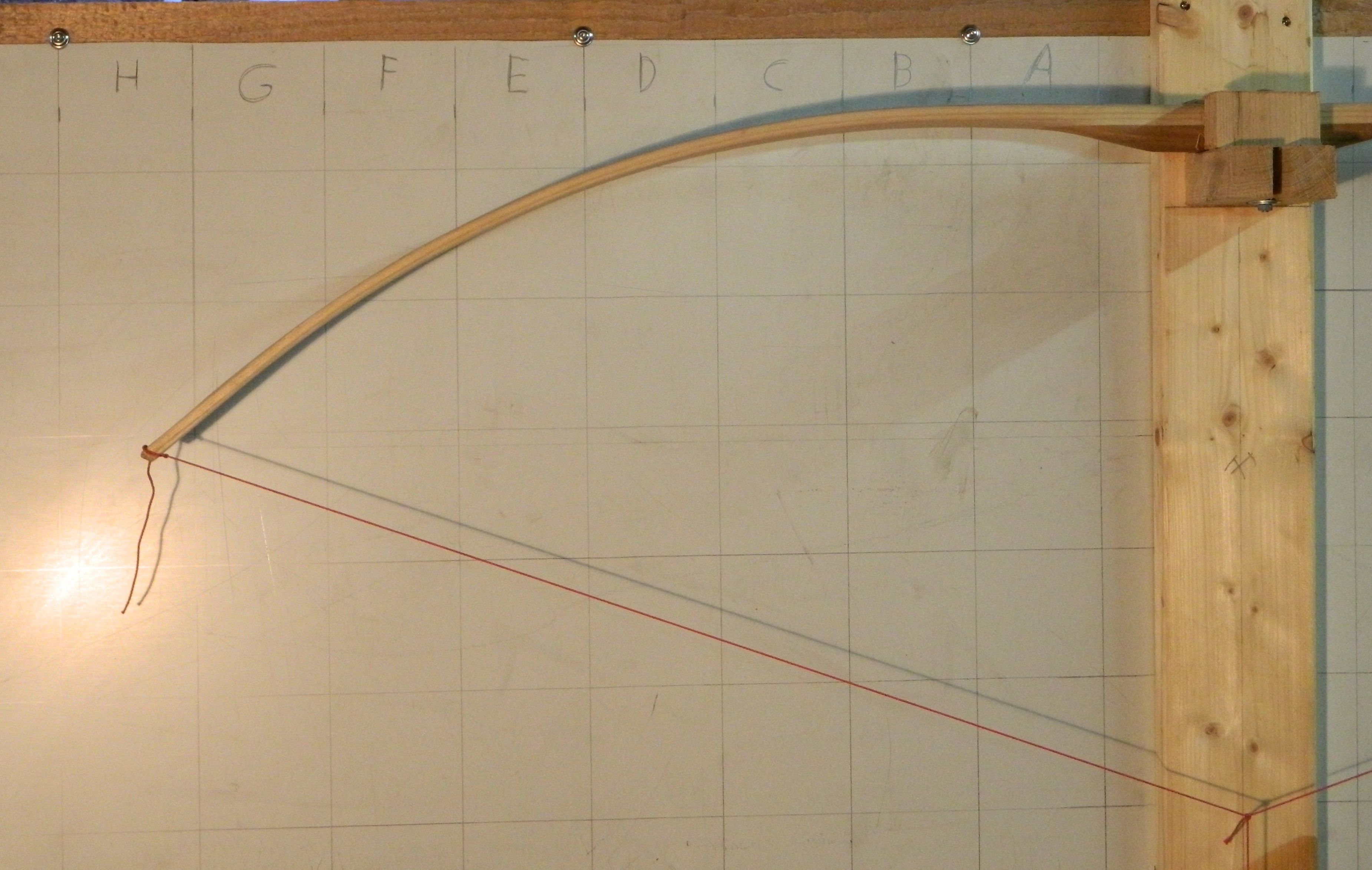 Der Tiller sieht momentan gut aus, ev. in den letzten Dritteln der Wurfarme Richtung WA-Ende (tips) ein ganz wenig mehr Biegung rein, aber nur wenig schaben und dann Foto....