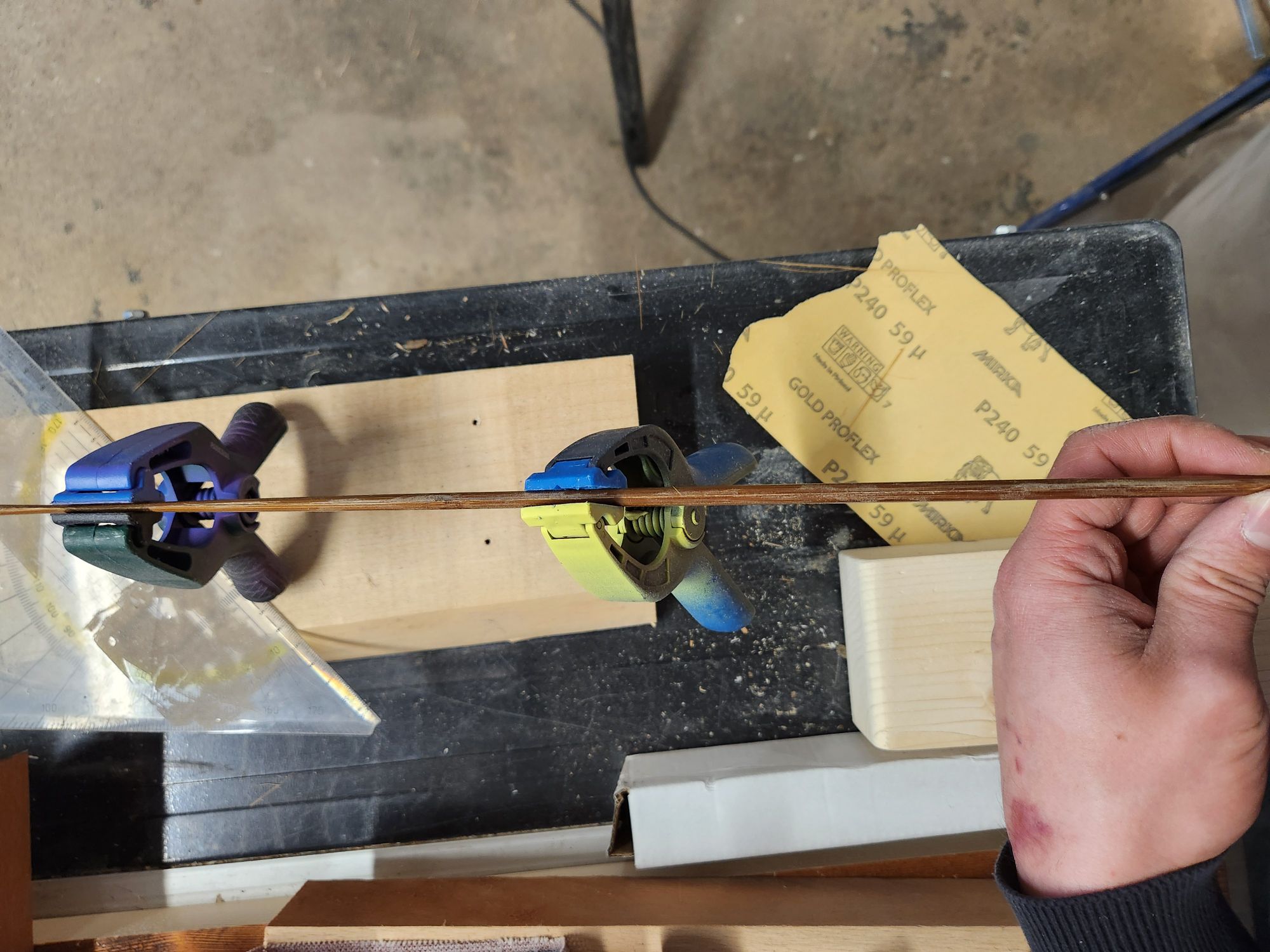 Meinen Kompositbogen hat es an einem Wurfarm etwas zur Seite verzogen, den muss ich mit Wärme korrigieren. Habe noch ein paar Laminate aus Ahorn getapert, ich werde noch einen (oder zwei