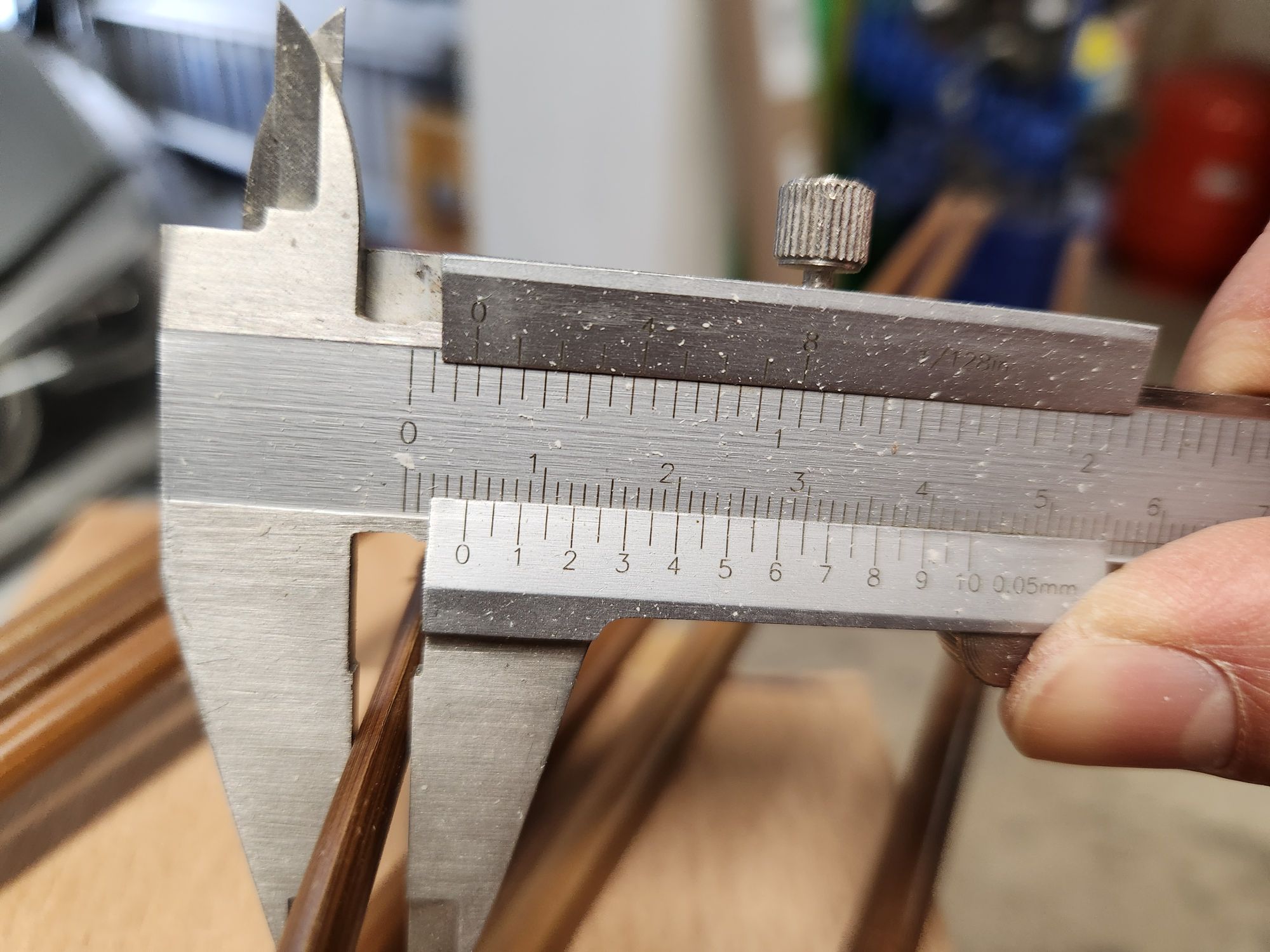 Ich hab jetzt einfach nur einige Beilagscheiben gleichmäßig unter dem Stahlstreifen verteilt, aber da ist trotzdem nicht mehr viel rauszuholen, weil die Schäfte in der Dicke nicht mehr hergeben... also der neue Versuch hatte in den inneren fast 40cm keinen vollständigen Kontakt mehr zum Schleifer. Ich hab dann mit der Hand drüber geschliffen und bin auf 6,2mm gekommen... auf gut glück werden ein paar etwas dickere Schäfte dabei sein und wenn ich die perfekt mittig mit der Bandsäge erwische sind maximal 7mm rauszuholen aber mehr geben die Schäfte nicht her. Damit kann ich die 28" Länge schon mal ziemlich sicher knicken