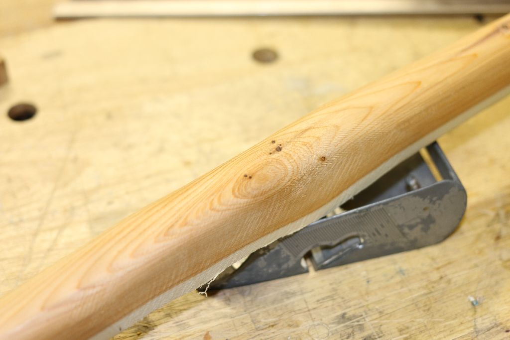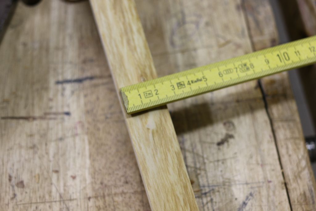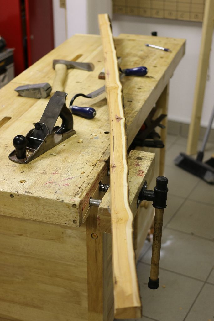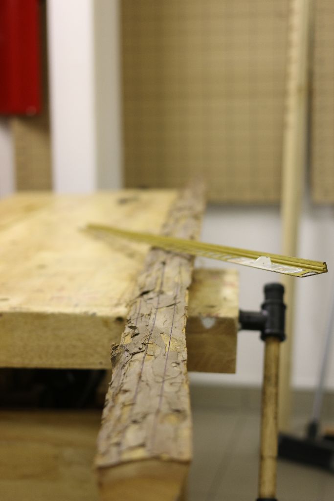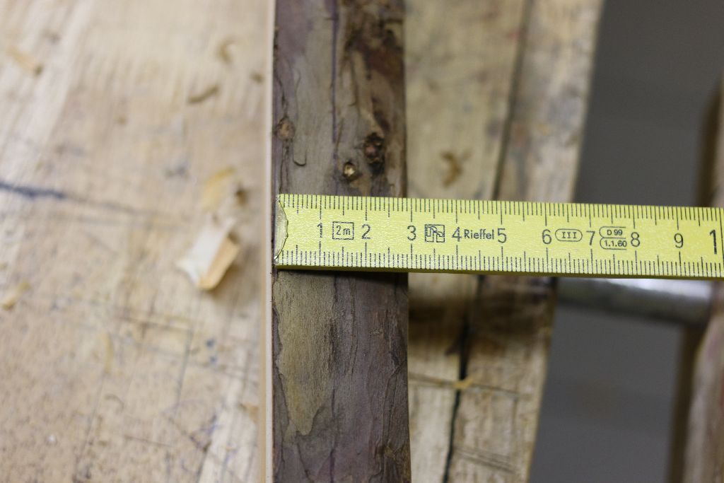 Der obere WA wehrte sich trotz astlosem Holz gegen das Biegen und riss ein. Der Riss wurde 5 Tage nach dem Dämpfen mit Seunkenkleber ausgefüllt und das Holz unter Vorspannung in der Form belassen, bis der Sekundenkleber ausgehärtet war.