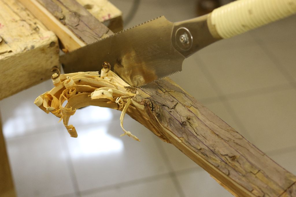 Der geflipte Bereich des unteren Wurfarmes begann nach einem kleinen Totast, der mittig im Rücken lag und sich bis in den Bauch erstreckte. Diesen mit in die Biegung einzubeziehen hielt ich für unklug, da hätte zu viel beim Biegen passieren können... bis hin zum Totalverlust.