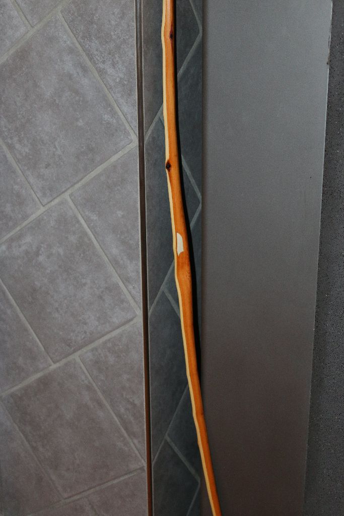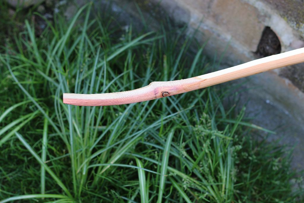 Nach zwei Wochen Trockenzeit (hier wollte ich kein Risiko eingehen. Die Tips waren nicht sehr stark gebogen worden und das Holz sollte erst komplett trocknen, ehe es belastet würde) sah der Stave dann so aus:
