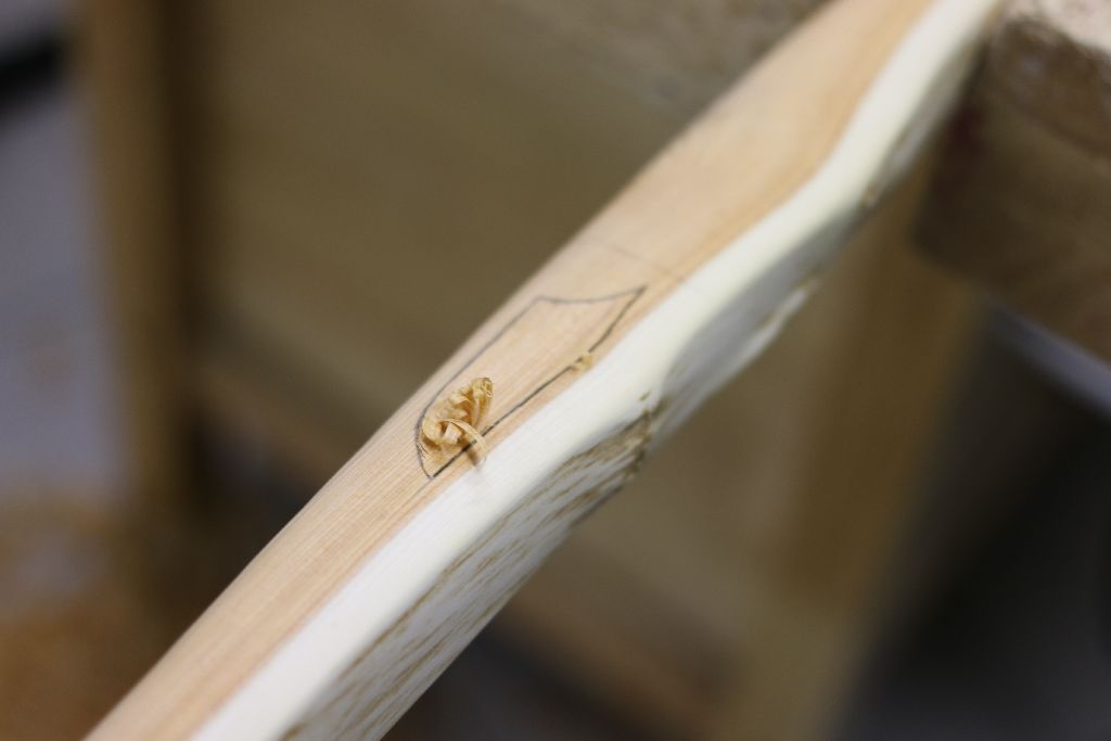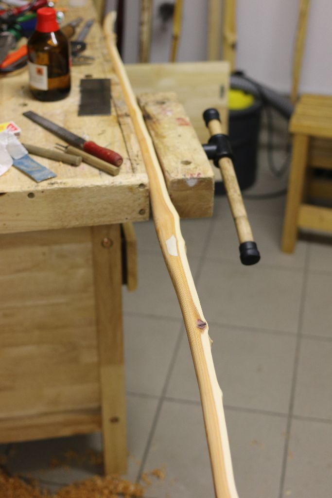 Der Bogen wurde im Anschluss über mehrere Tage getillert. Am Ende dieses Prozesses sah der Rohling nun so aus: