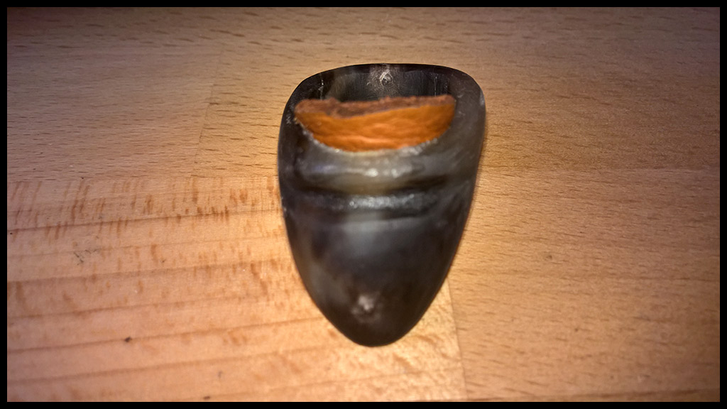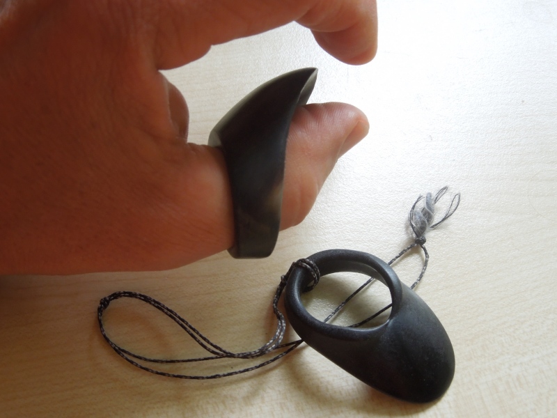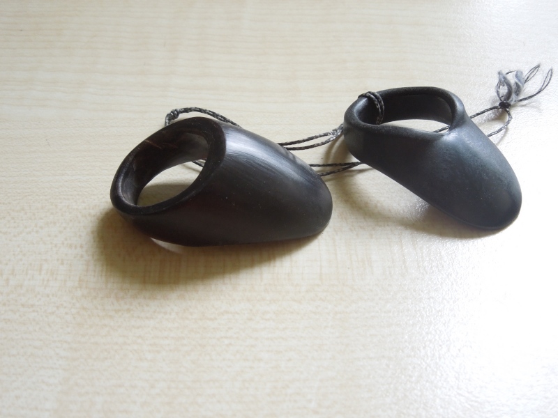 Dem Material geschuldet, erwies sich dabei der RIng aus Elfenbein in jeder Hinsicht als der schußkomfortabelste; auch im Vergleich zu (hier nicht abgebildeten) Ring aus Knochen.