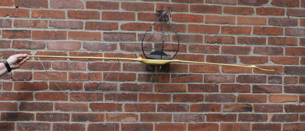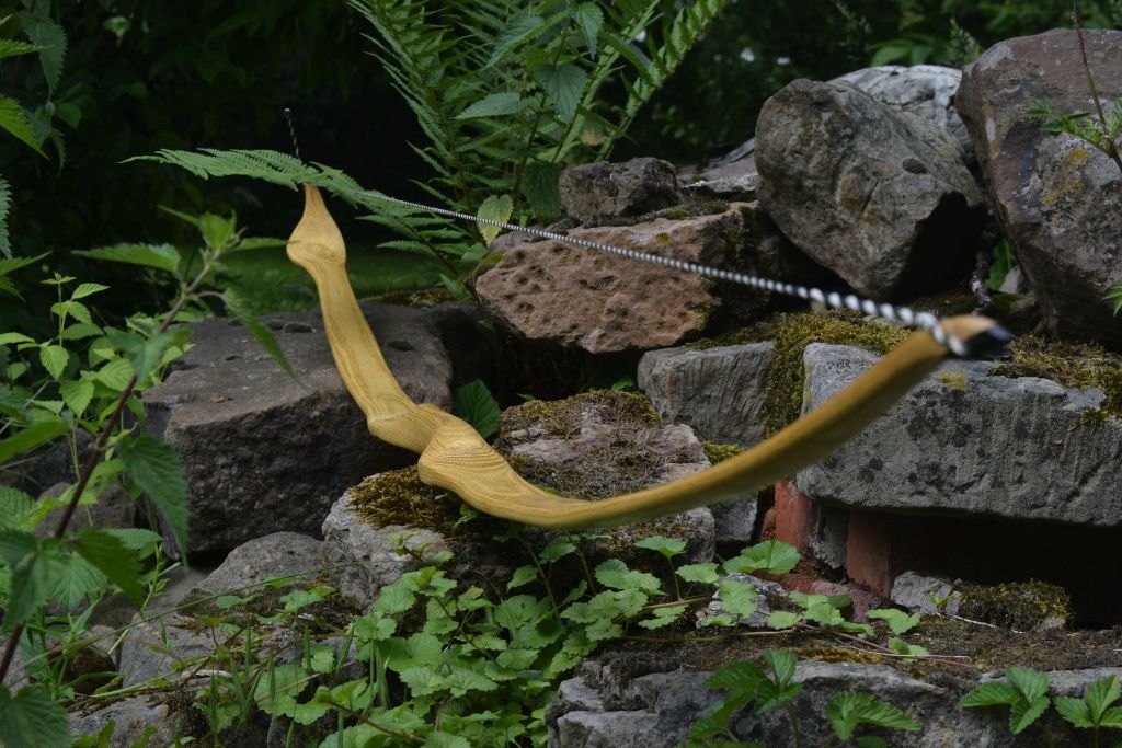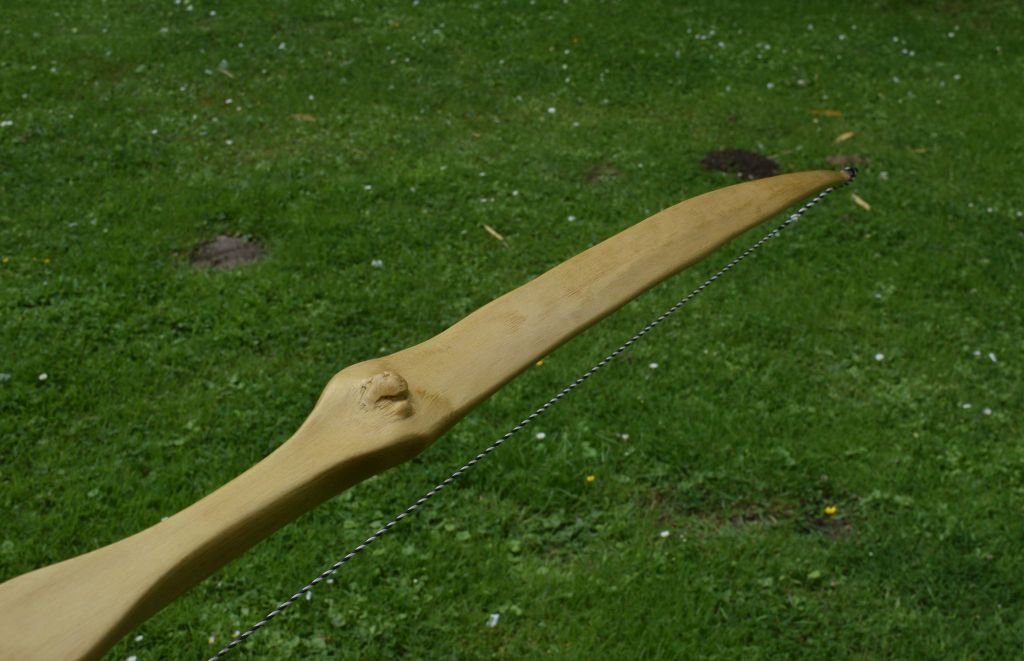 lange nix gezeigt. Streng genommen ist der Bogen gar nicht von mir, sondern von einem Teilnehmer meiner Kurse. Ich bin ausnahmsweise mal dazu gekommen, einen so entstandenen Bogen abzulichten, wenn auch schnell schnell - die Fotos sind deshalb nur wenige und auch nicht optimal (den Tiller habe ich nicht gut von der Seite erwischt). Fand das Teil aber ganz abgefahren mit den integrierten Ästen, dass ich es mal zeige. Aufgrund der hohen Masse am Ende hat der Bogen leichten Handschock, es ist aber sehr erträglich und weit weniger schlimm, als befürchtet
