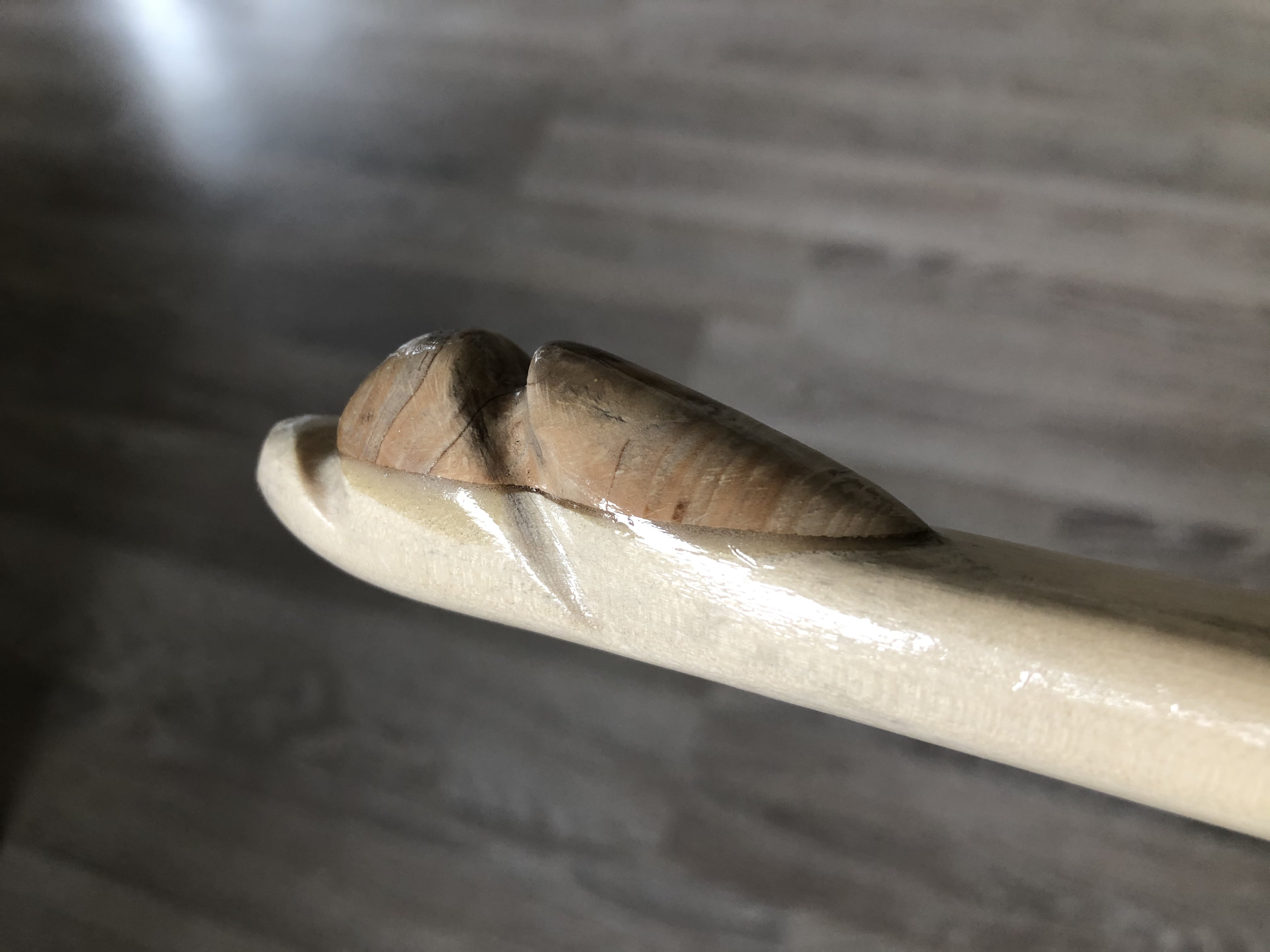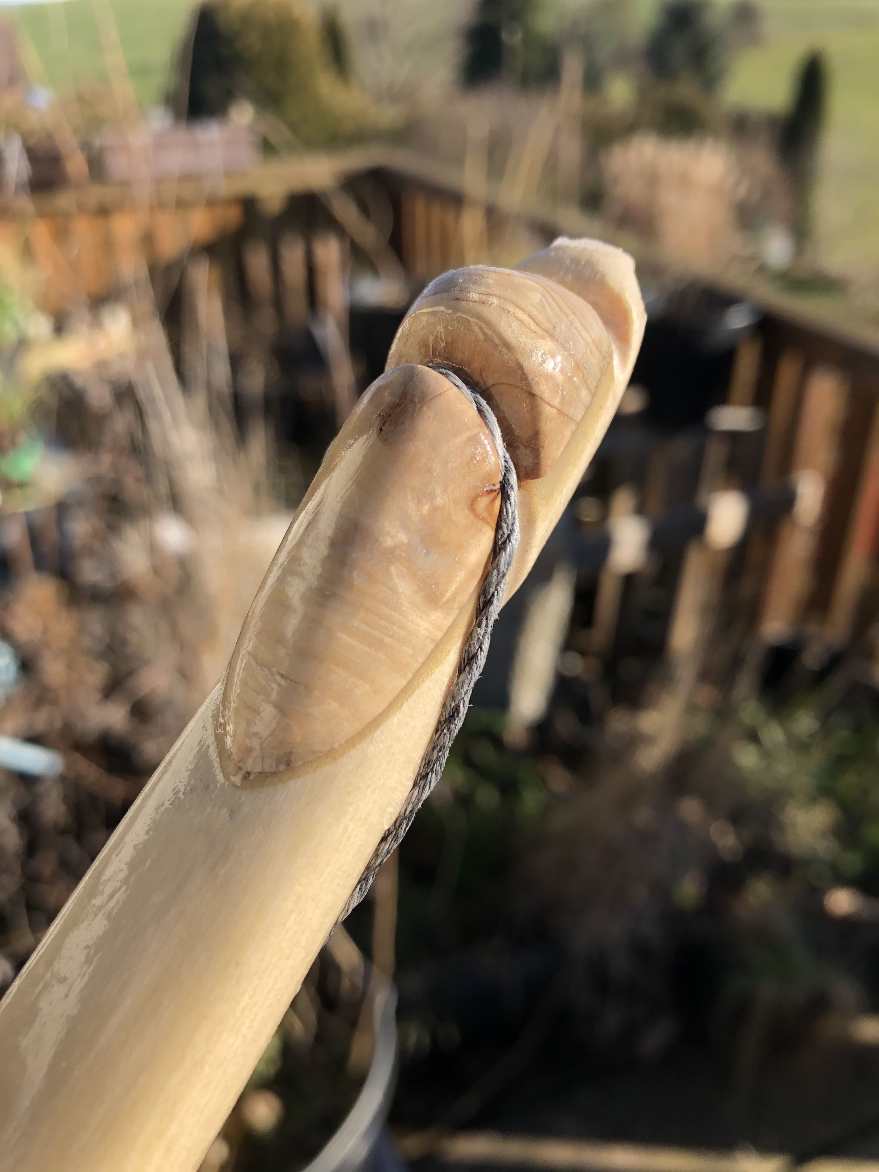 Es ist nicht so richtig mein allererster Bogen, allerdings der erste, den ich bis zum Finish gebracht habe. Meine ersten Versuche haben sich im Bereich von knapp 30 bis etwa 45# bewegt, ein Hasel und zwei Holler sind tatsächlich schussfähig. Dann gibt es noch drei Kinderbogen, ebenfalls Hasel und Holler, für meinen Filius.