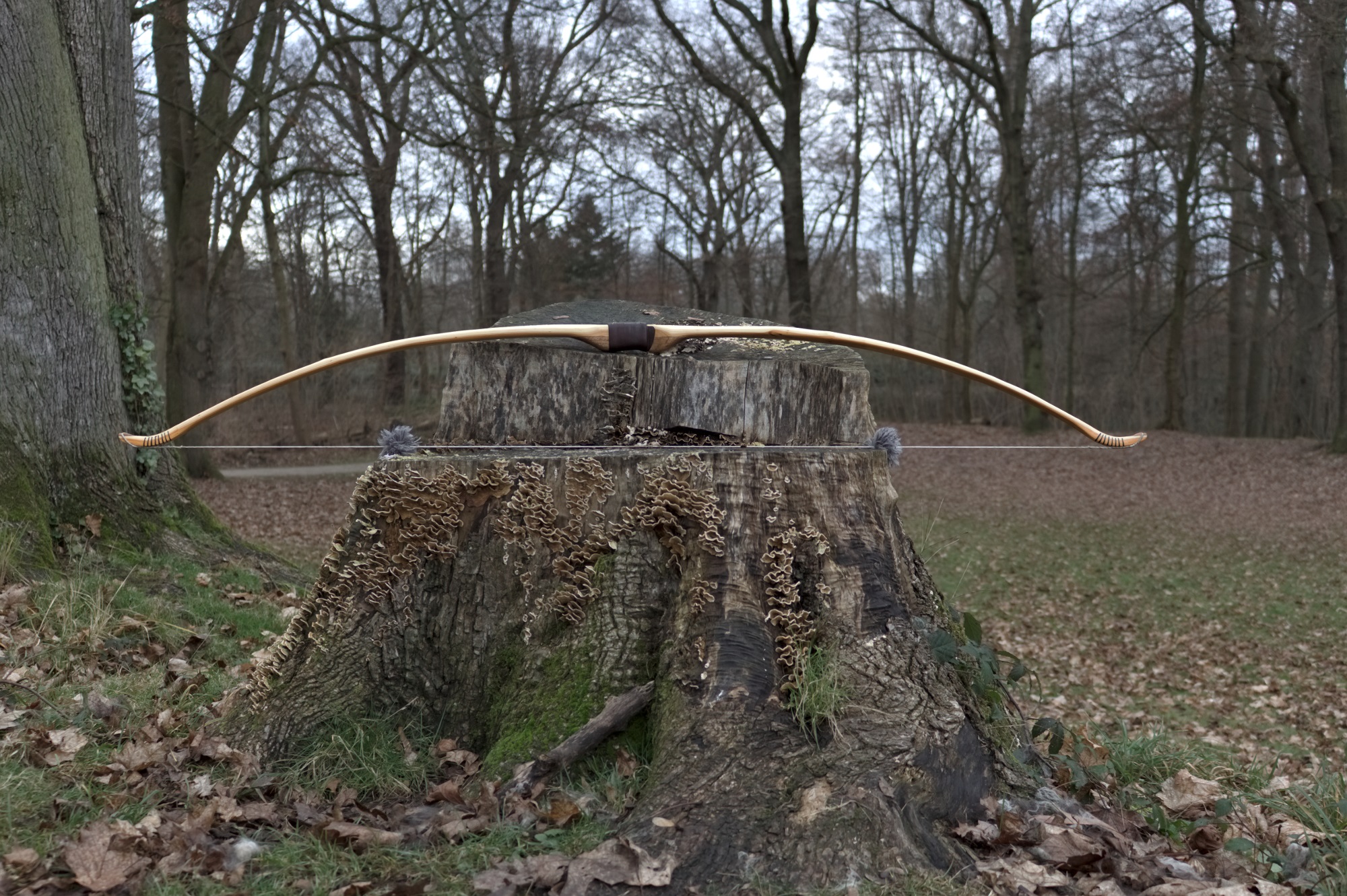 Design komplett aus der Hüfte geschossen: Eibe Flachbogen, kurze steile Recurves, Schussfenster, fast "centershot",