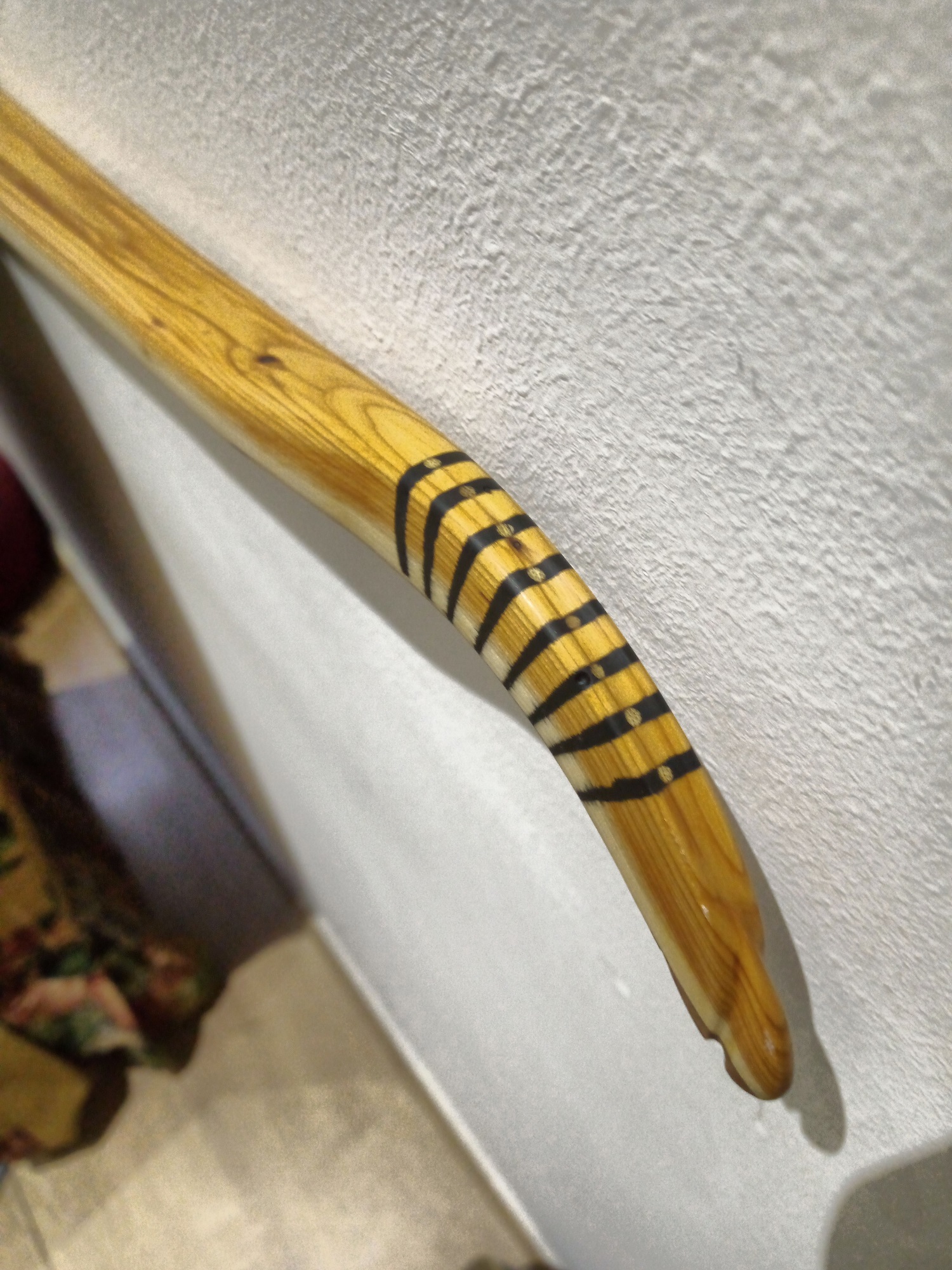 Lest nochmal weiter oben unterhalb der Fotos, wie dort bereits erwähnt habe ich zu früh auf Absenden gedrückt. Die Erklärung für beide Phänomene ist dort (mittlerweile) angegeben. Die schwarzen Linien sind nicht kosmetisch sondern funktional, auf den Recurves liegt jeweils ein Streifen Rohhaut, der ist allerdings eher kosmetisch. Danke schonmal für die Komplimente!
