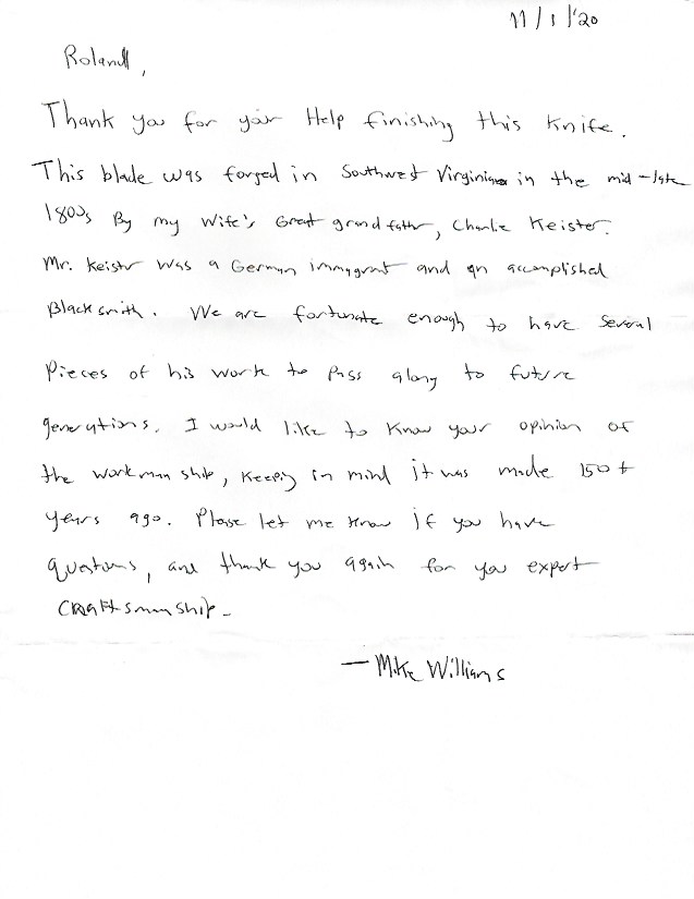 Sein Schwager hätte da eine alte Klinge die seit langer Zeit in der Familie ist und ob ich da was machen könnte. “Schick mir mal ein gutes Bild mit den Abmaßen des Messers.“ hab ich ihm gesagt.