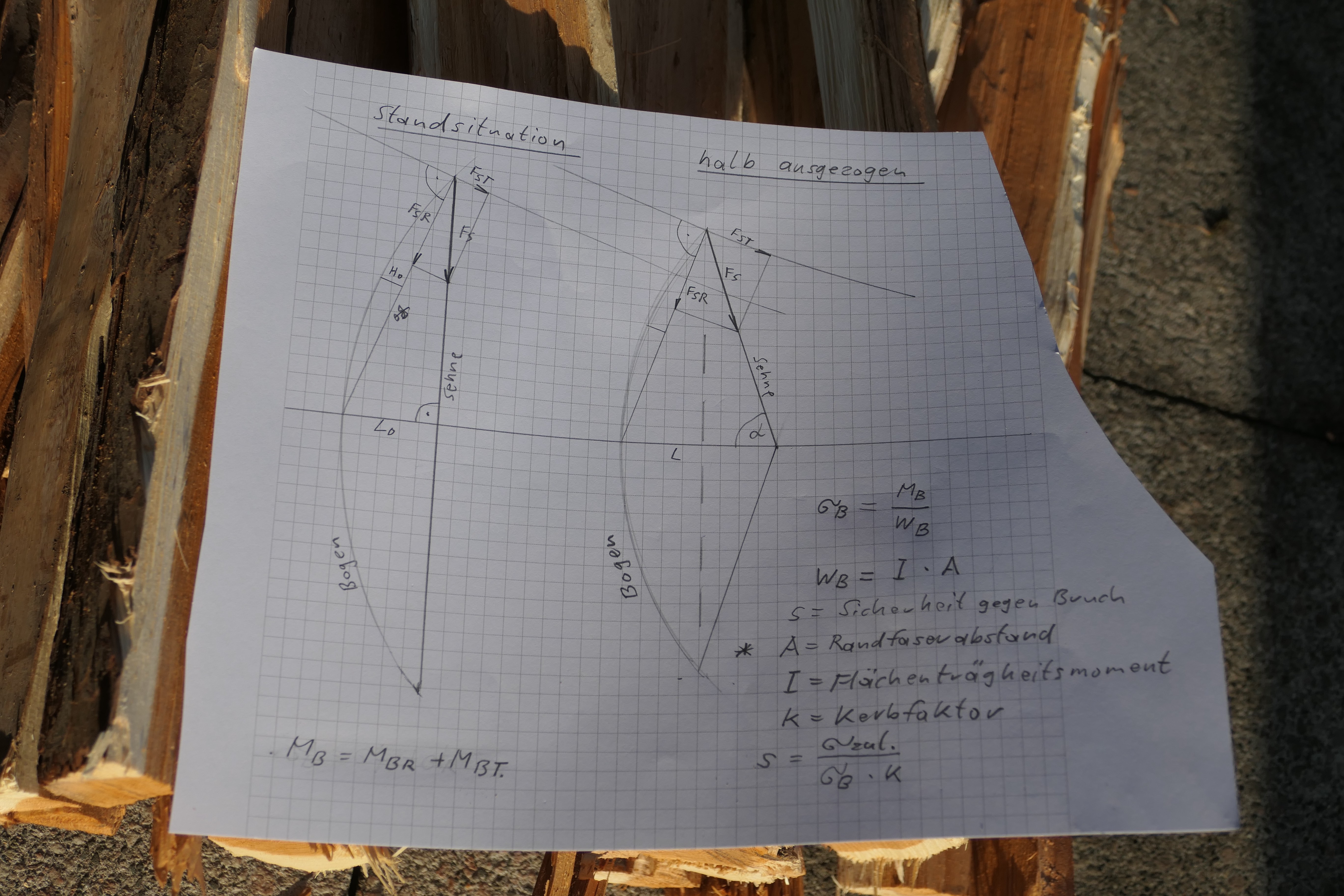 Nun, ich wollte nur den Rechenweg aufzeigen und bin bewusst nicht ins Detail gegangen. Sonst wäre der Zopf noch viel länger. Ich wollte nur aufzeigen, daß die maschinenbaulichen Berechnungsmethoden eben exakt auf die Parameter führen, die beim Bogenbau zu beachten sind.