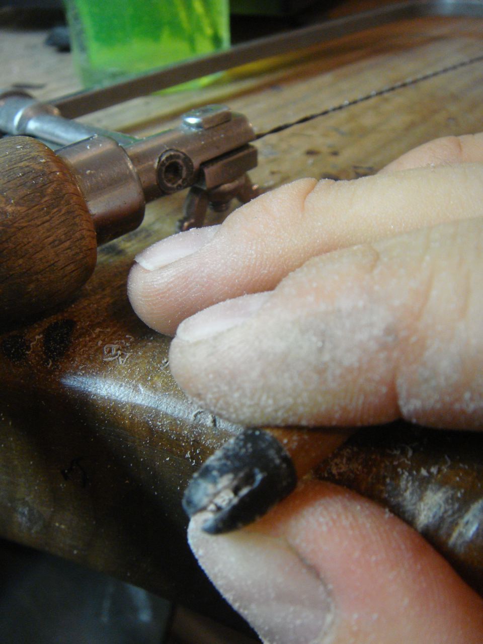 Ausfeilen... im Hintergrund: Schanierfeilen, Nadelfeilen, Fräser (Hängebohrmaschine)...