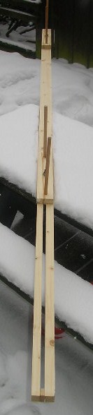 Grund dafür war, daß sich sowohl die Dachlatte als auch die Holzstäbe beim Auflegen des Dacron leicht gebogen hatten (Die Stränge sollten ja nicht durchhängen und schön parallel liegen). Nachgemessen hatte ich natürlich nicht mehr.