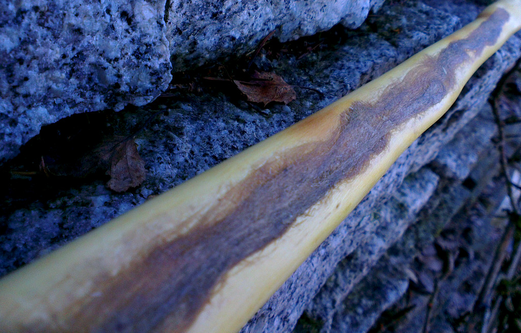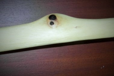 Ist mein erster Weissdornbogen und ich bin überrascht was das Holz mitmacht - trotz Wurmfrass und schwarzen Stellen zwischen den Jahresringen ... ;D