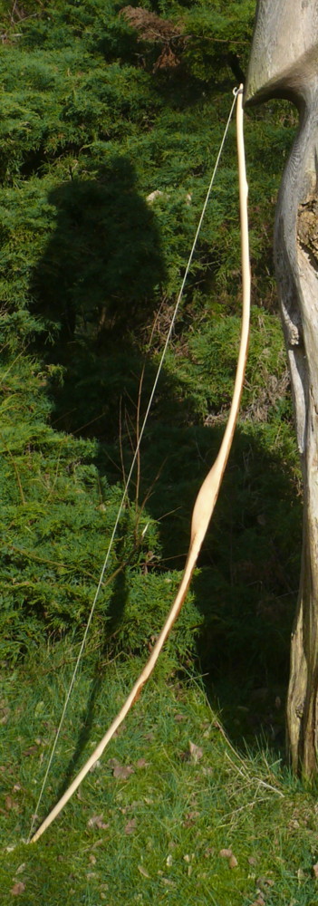 Trotz alledem bin ich einigermaßen zufrieden mit dem Resultat, die Pfeile fliegen nach vorn und außerdem liebe ich das Holz und seine Bearbeitung. Die Schwachstelle unten hätte noch etwas Aufmerksamkeit vertragen, ebenso wie die Enden in ihrer Biegung. But thats Saplingturnier...