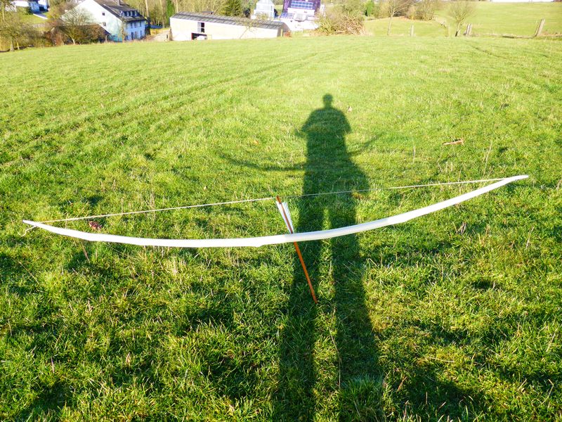von dem ursrünglichen Reflex des Staves nach dem Trocknen unter Rückspannung ist nix mehr übrig. Direkt nach dem Abspannen hat er 1" Set, nach einem Stündchen ist er wieder ziemlich gerade. Alles in allem ein 08-15 Allroundbogen mit angenehmem Schussverhalten.