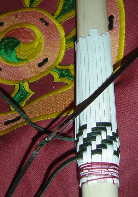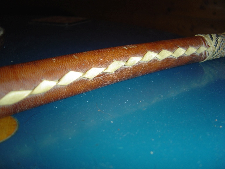 ist in Afrika bei Lederummantelungen beliebt... aber schwierig zu durchblicken... es gibt einen Faden und einen Rohhautstreifen..