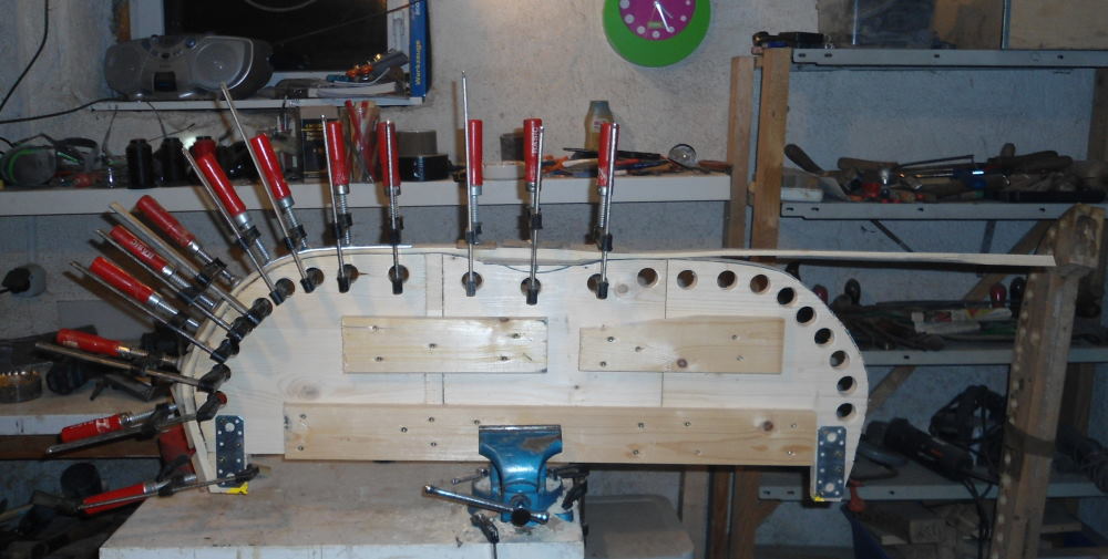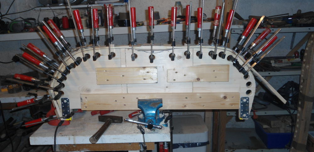 Gott sei Dank hab ich vor dem Biegen nochmal kontrolliert ob der Bogen auch draufpasst und dabei festgestellt das der Grozer um 2 cm asymmetrisch ist während ich den rahmen symmetrisch gebaut habe, also Form anpassen.