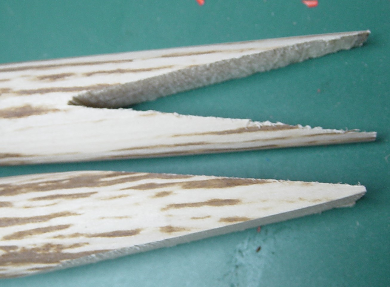 Dann habe ich noch 2 Keile für die Nocks aufgeklebt, gefertigt aus den abgesägten Überständen der 2 Hartriegel.