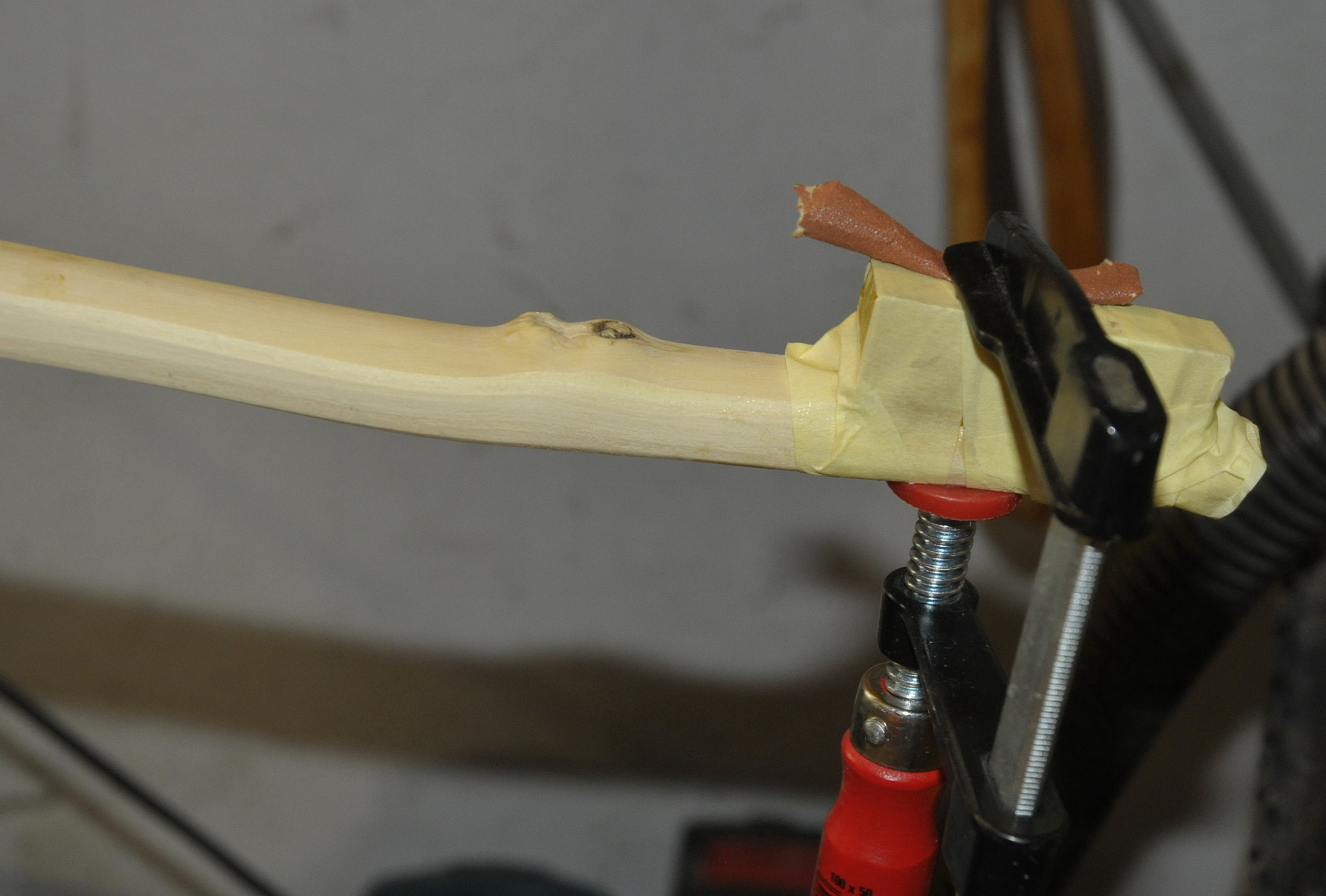 Nach dem Tillern habe ich den Stave wieder eingespannt um ihn etwas zu korrigieren (Sehnenlage).