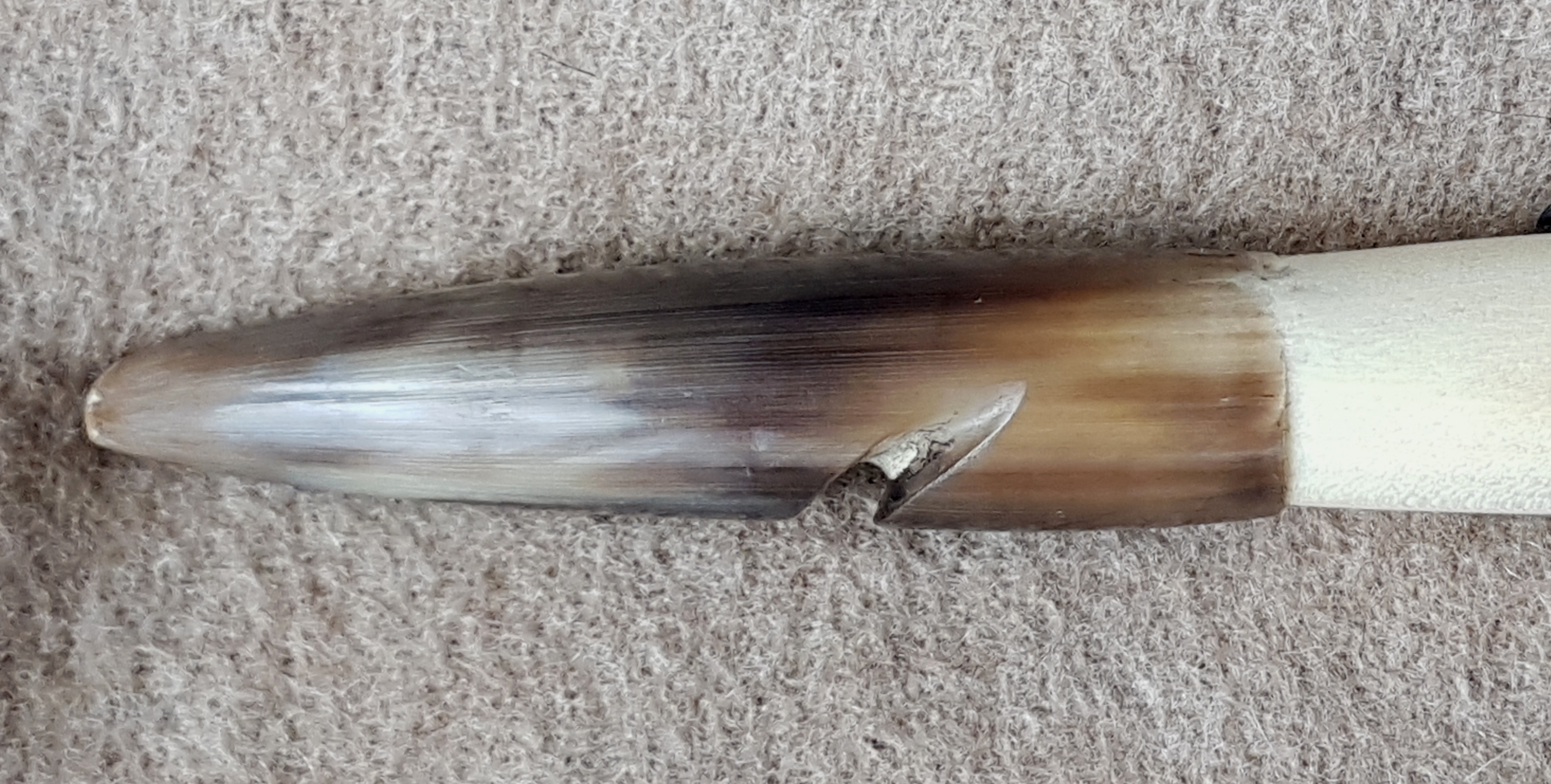 Macht mit Daumen richtig Laune und wirft auch schwere Pfeile überraschend schnell und ohne Handschock. Die Japaner wussten schon, was sie an dem Design haben. 2 Dinge, die mich einfach freuen: erstens dieser perfekte Rohling - sowas findest du einmal in ein paar Jahren. Zweitens das Pfaffenhütchen an sich - immer wieder schön, wie lebendig und schwingfreudig das Holz ist. Dagegen wirkt die Kornelle wie ein Nudelholz.