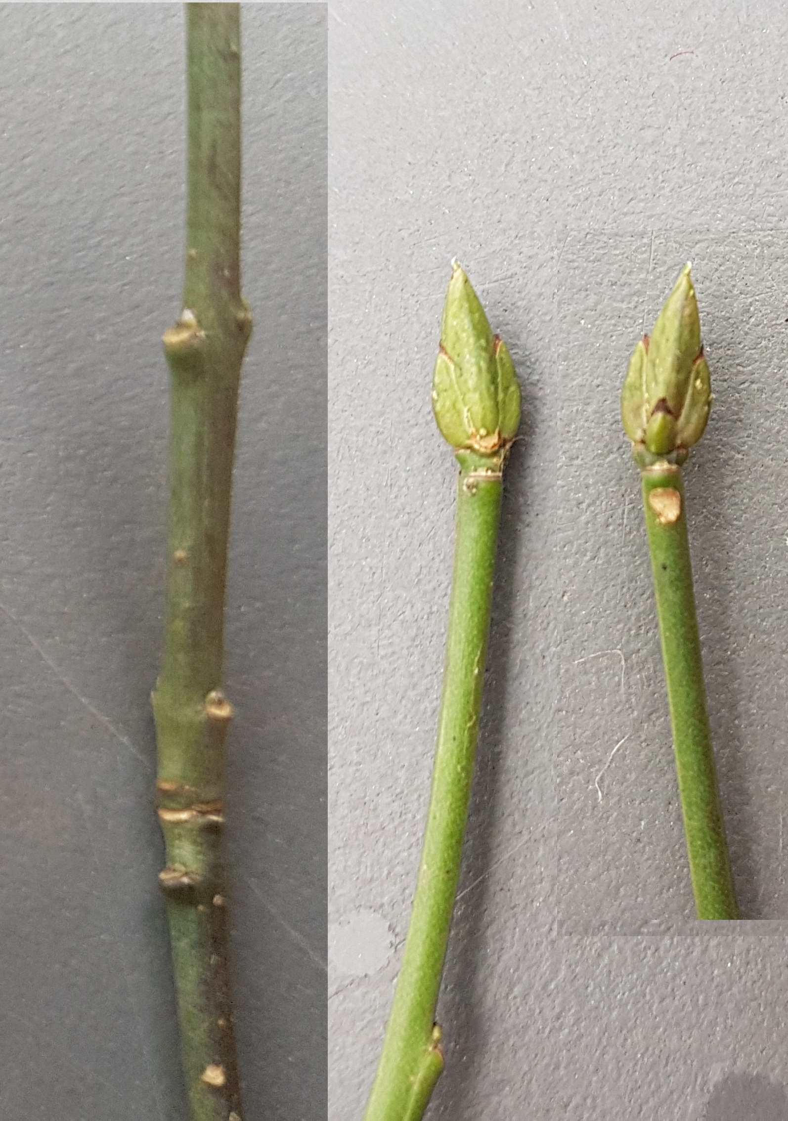 - eine Knospe aus 2 Blickwinkeln + Ästchen