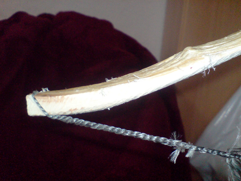 Natürlich habe ich für den Wettbewerb mehr auf Sicherheit gebaut. Nach Abschluss der Competition werde ich den Bogen brutal kürzen und komme dann sicher über 40 lb. Ich möchte mal sehen, was das Holz aushält. Alle Knubbel und Astansätze sind übrigens plan geschliffen
