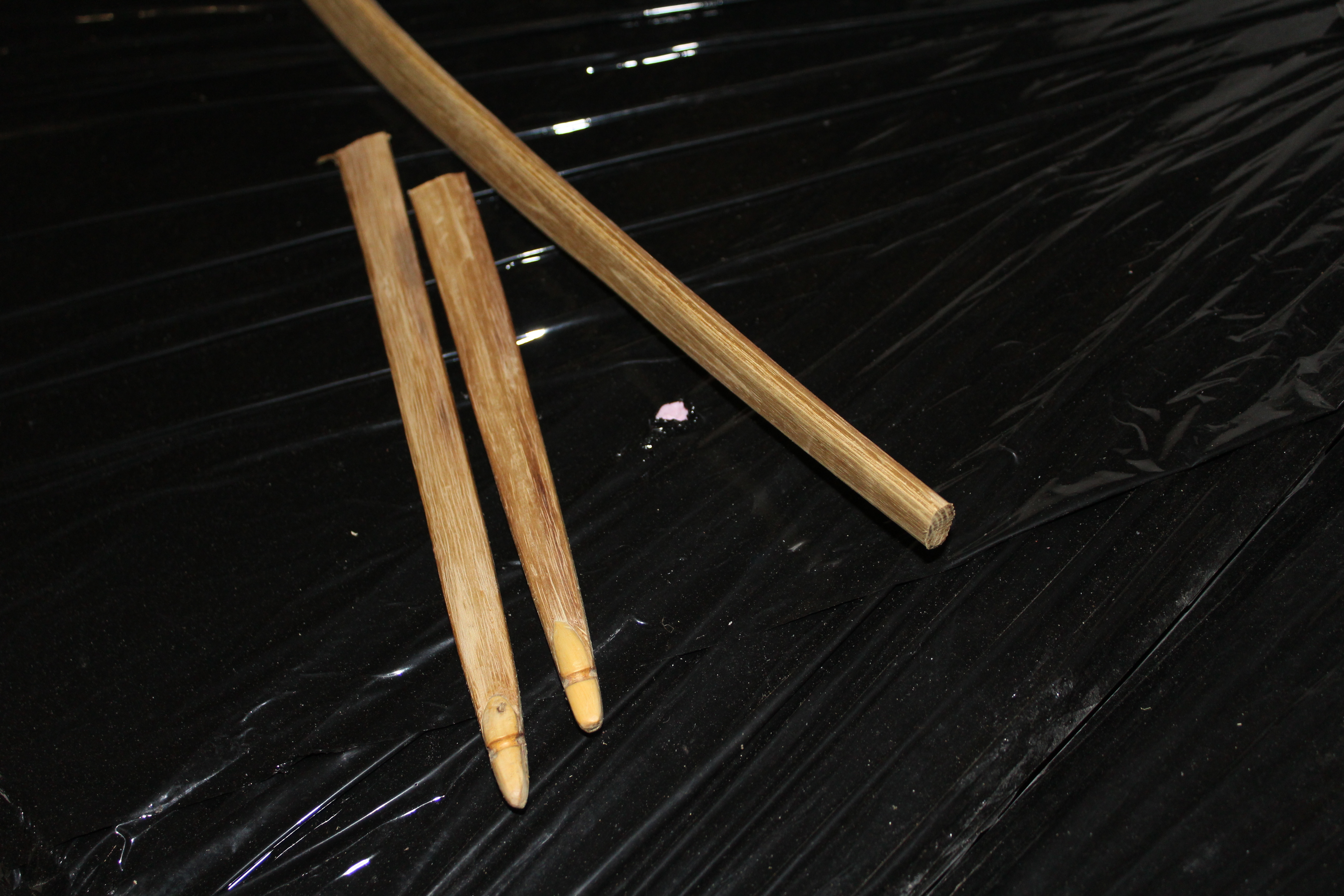 Weiter mit dem EFEU, paar Pfeile waren schon geschossen als es -knackte- dann nochmal nen Köcher leergeschossen und nichts gesehen und dachte mir, da bau ich jetzt die Sehne in verschiedenen Farben dazu... und schwupps, trocken abgebrochen- genau unter einem Ast an dem vorher keine Verfärbung zu sehen war... ERGO, EFEU/Rainbow Projekt abgebrochen.... die noch nicht fertigen Tips waren mein Selfmade Mirkarta No.1, Griffwicklung buntes Sehnenwickelgarn.... weiter gehts, so habe ich mir das beizen gespart...