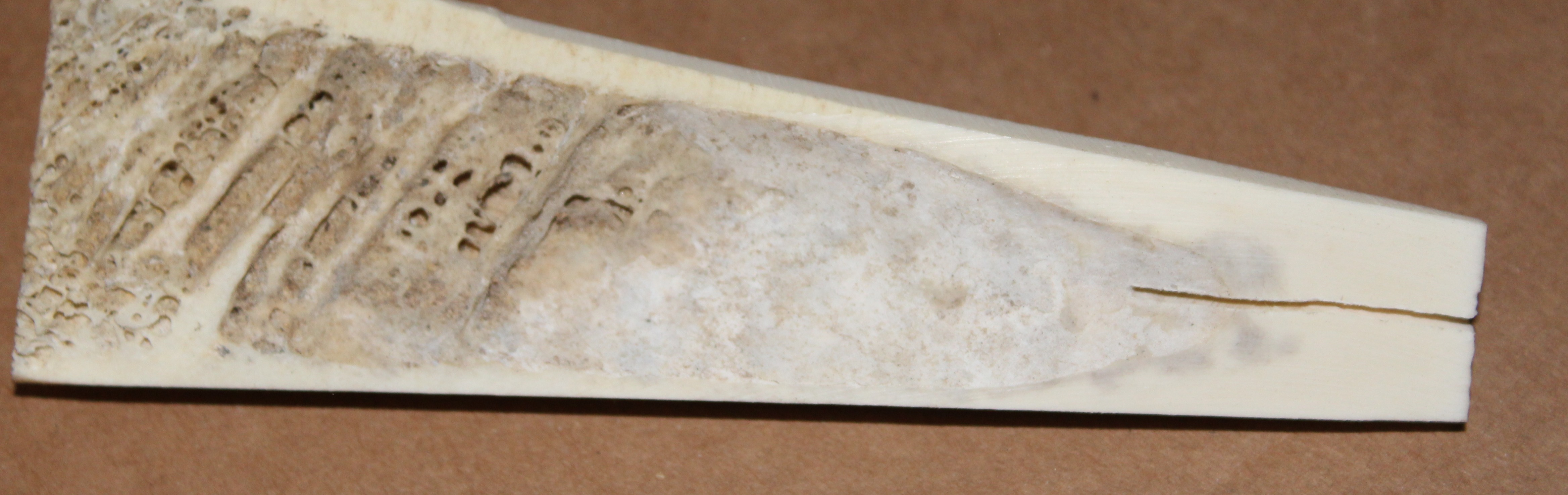 Was tun sprach der Schwabe,an der Robinie den Tillereinbruch absägen und mit etwas kurzem (120cm) weitermachen..... und neue Tips drauf, jetzt halt aus Suppenknochen