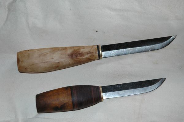 Habe auch mal wieder 2 Stück fertig.  Oberes mit Griff aus Esche geölt mit Ballistol; Unteres mit Griff aus Lederscheiben welche mit Lederfett und Sonnenblumenöl behandelt wurden und einem Stück Esche, gebeizt, geölt und gewachst. Bei dem Oberen überlege ich noch den Griff einzukürzen.. mal sehen