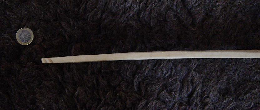 Ach ja, ein paar längere Eibenspitzen habe ich auch noch. Die werde ich eventuell genau so verarbeiten, das soll heißen, sie werden geteilt und jeweils zwei gleichstarke im Griff gespleisst.