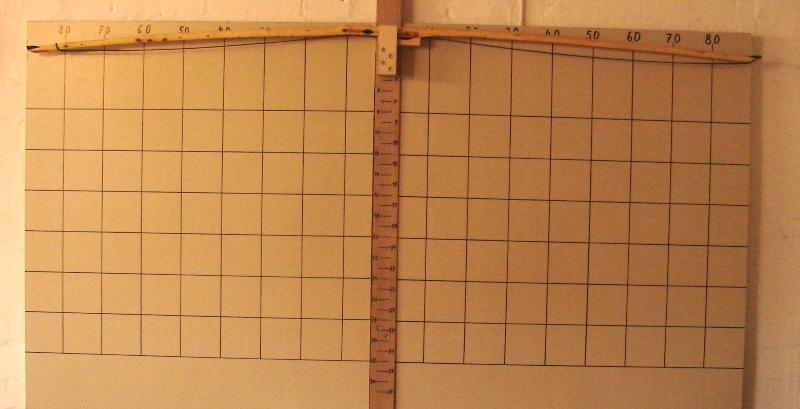 Entstanden ist dieser Bogen weil ich Wissen wollte ob es sich lohnt, solche dünnen Baumspitzen, wie man sie auf den meisten Eiben findet, mitzunehmen. Bisher habe ich solche Spitzentriebe nur zu Messergriffen, Pfeilsuchkratzern und Beilstielen verarbeitet. Ich muß sagen: „Ich bin Überrascht“. Ich hätte nie gedacht das der Bogen 50# erreichen kann und einen Auszug von 30“ Zoll ohne klagen aushält. Das Tillern war ein Witz, keine 30 Minuten und ich war bei 30“Zoll Auszug. Ich hatte mir die Seiten mit den wenigsten Ästchen als Rücken ausgesucht und die künftigen Bauchseiten mit der Kreissäge besäumt danach noch die Seitenflächen besäumt und die Rinde entfernt. Durch diesen gegebenen Taper fiel das Tillern sehr leicht. Die meiste Arbeit haben die Hornteile gemacht, ohne die, dauerte die Arbeit am Bogen höchstens 5 Stunden Netto. Oberfläche mit Leinölfirnis eingelassen, bis jetzt 3 Schichten.