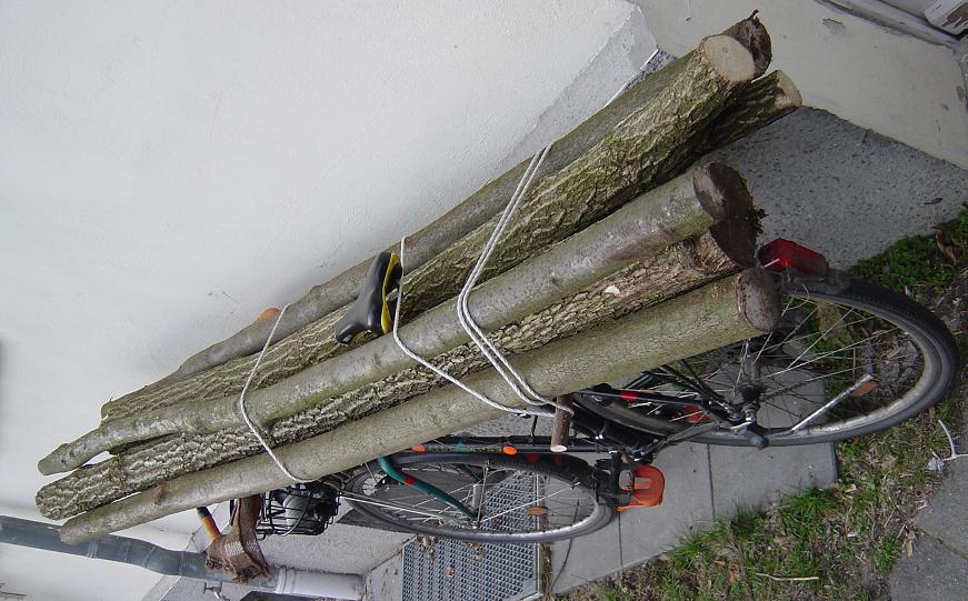 Unauffällig mit den Fahrad fort fahren und mit einem halben Festmeter Holz nach Hause kommen.