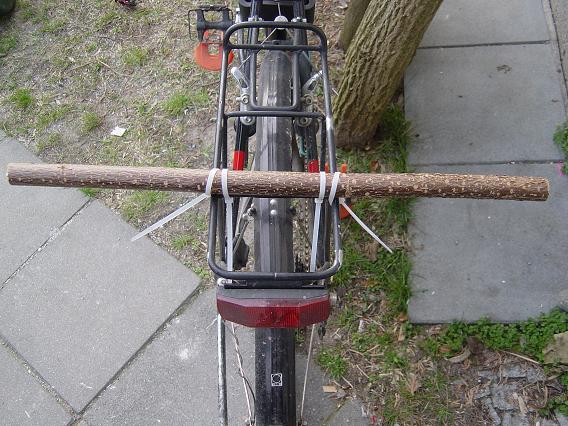 Unauffällig mit den Fahrad fort fahren und mit einem halben Festmeter Holz nach Hause kommen.