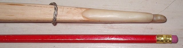 Der Kopf wird auf einen Bambusschaft passender Länge und unbeschnittener Befiederung montiert werden.